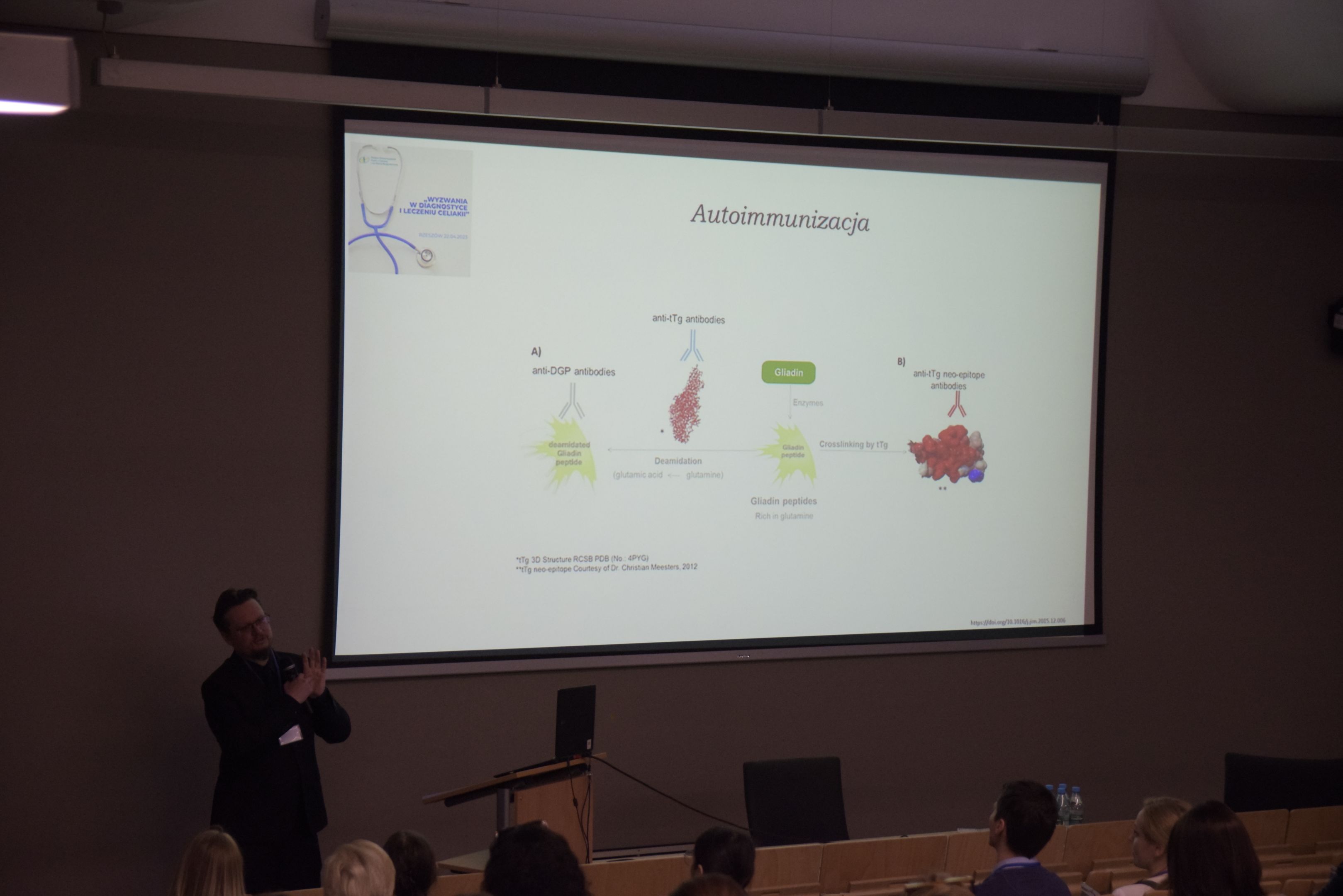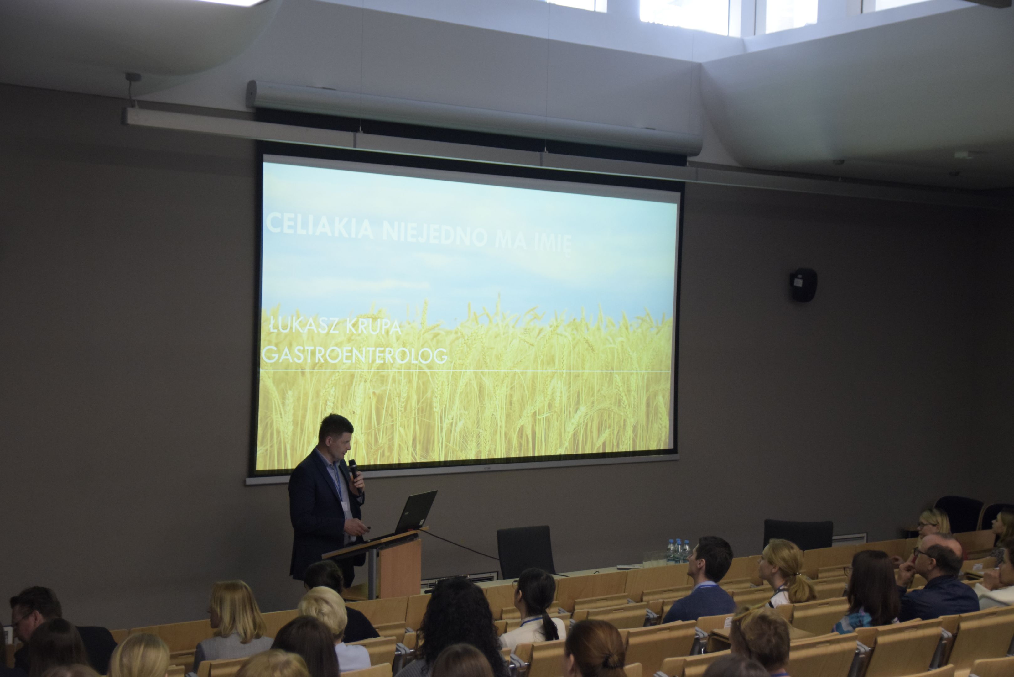 Sesję wykładów zainicjowała Prezes Polskiego Stowarzyszenia Osób z Celiakią i na Diecie Bezglutenowej Małgorzata Źródlak ukazując ważna rolę Stowarzyszenie we wspieraniu osób będących na diecie bezglutenowej. Prof. dr hab. n. med. Bartosz Korczowski Instytut Nauk Medycznych KNM wygłosił wykład ,,Wyzwania w diagnostyce i leczeniu celiakii”. Kolejny wykład przedstawił dr hab. n. med. Mariusza Dąbrowskiego prof. UR Instytut Nauk Medycznych KNM ,,Celiakia i cukrzyca typu 1: Dalecy kuzyni, czy trochę bliżsi krewni?” wskazując iż cukrzyca typu 1 często towarzyszy osobom z chorobą trzewną. Natomiast prof. dr hab. n. med. i n. o zdr. Jacek Tabarkiewicz Instytut Nauk Medycznych KNM w wykładzie „Celiakia jako choroba autoimmunizacyjna” wyjaśnił autoimmunizacyjną przyczynę celiakii. Przedostatnim wykład „Celiakia niejedno ma imię” przedstawił dr Łukasz Krupa omawiając przypadki pacjentów z choroba trzewną z praktyki lekarskiej w szpitalu i przychodni. Wystąpienie “Glutenowe pułapki – dieta bezglutenowa w praktyce” mgr Natalii Lipietty, dietetyka z Centrum Diety Bezglutenowej zakończyło konferencję.