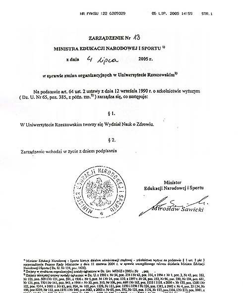 Warunki utworzenia Wydziału Medycznego (obecnie: Kolegium Nauk Medycznych) zostały w tym okresie spełnione. Decyzją Senatu UR z dnia 27 maja 2004 roku został wydzielony z Wydziału Pedagogicznego jako Wydział Nauk o Zdrowiu. Minister Edukacji Narodowej i Sportu Zarządzeniem nr 13 z dnia 4 lipca 2005 roku utworzył w Uniwersytecie Rzeszowskim Wydział Nauk o Zdrowiu. Pierwszym dziekanem nowego wydziału został wybrany prof. dr hab. n. med. Ryszard Cieślik, prodziekanami zostali dr n. med. Małgorzata Marć i dr n. o kult. fiz. Teresa Pop. Rada Wydziału Nauk o Zdrowiu w 2005 roku podjęła decyzję o zmianie nazwy na Wydział Medyczny. Senat UR zatwierdził tę decyzję uchwałą z 24 listopada 2005 roku. Nowa nazwa Wydziału zaczęła obowiązywać od 1 kwietnia 2006 r.