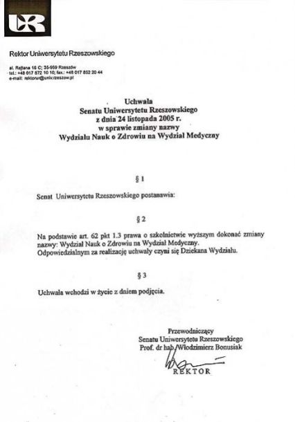 W dniu 1 października 2019 r. powstało Kolegium Nauk Medycznych w wyniku przekształcenia z Wydziału Medycznego UR w związku ze zmianą struktury w Uniwersytecie Rzeszowskim.