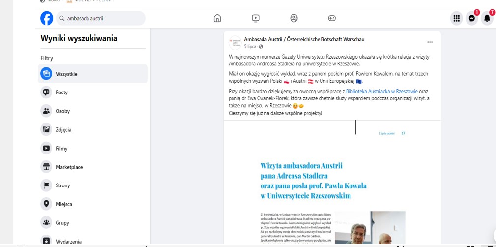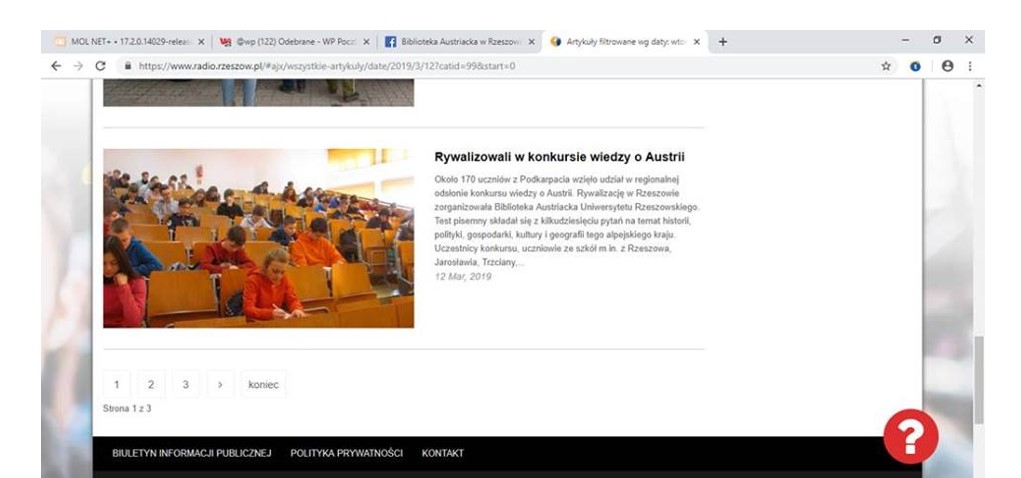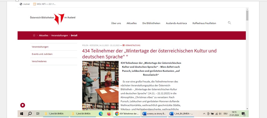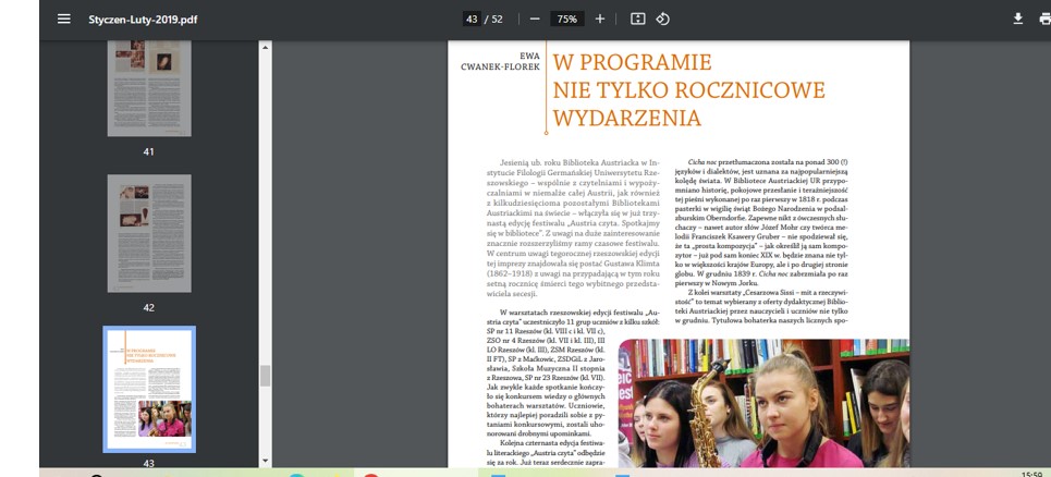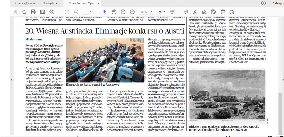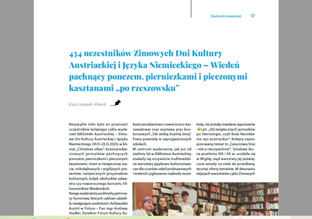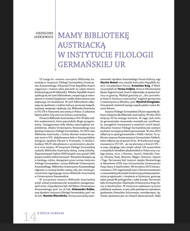 Relacje w „Gazecie Uniwersyteckiej” z istotnych wydarzeń w Bibliotece Austriackiej