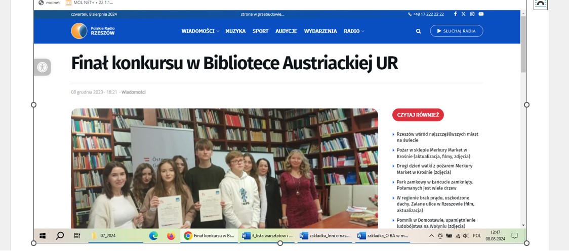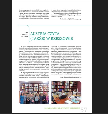 Działalność Biblioteki Austriackiej UR znajduje rezonans w mediach. Napisali o nas: Ministerstwo Spraw Zagranicznych Austrii, redakcja festiwalu literackiego „Österreich liest”, Ambasada Austrii, Konsulat Generalny Austrii, Austriackie Forum Kultury, Trybuna Opolska, Tygodnik Zamojski. Naszą pracę regularnie dokumentuje także Polskie Radio Rzeszów.