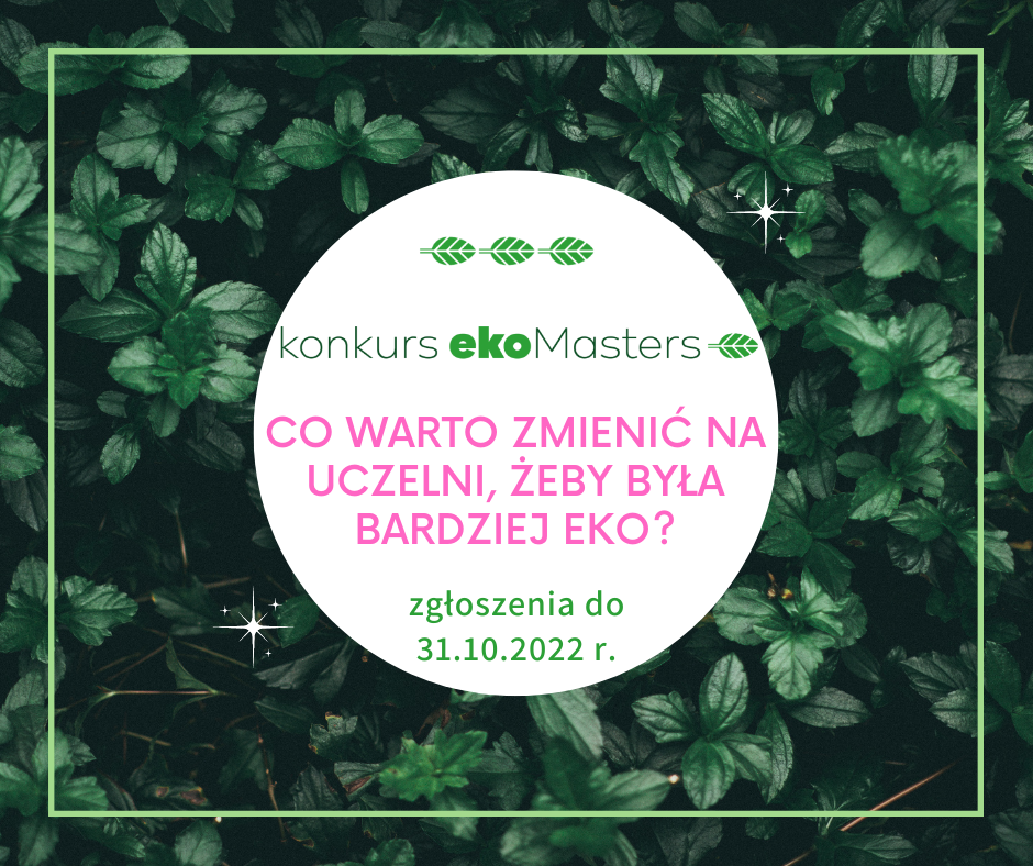 Trwa kolejna edycja Konkursu ekoMasters. W tym roku, do 31 października br. zbieramy pomysły dotyczące sposobów zmniejszenia negatywnego wpływu funkcjonowania uczelni na środowisko naturalne lub tworzenia ekologicznego modelu działania tych instytucji.