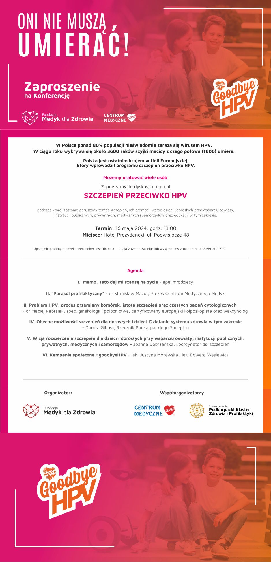 Zaproszenie na konferencje o HPV - 16.05.2024 - Hotel Prezydencki Rzeszów