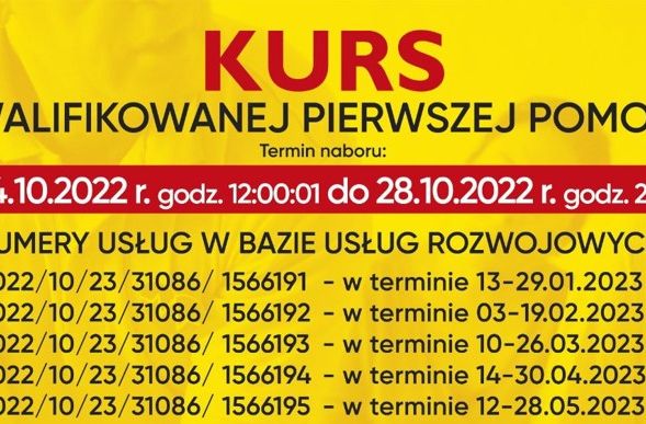Zapraszamy do skorzystania z oferty szkoleniowej: Kurs Kwalifikowanej Pierwszej Pomocy