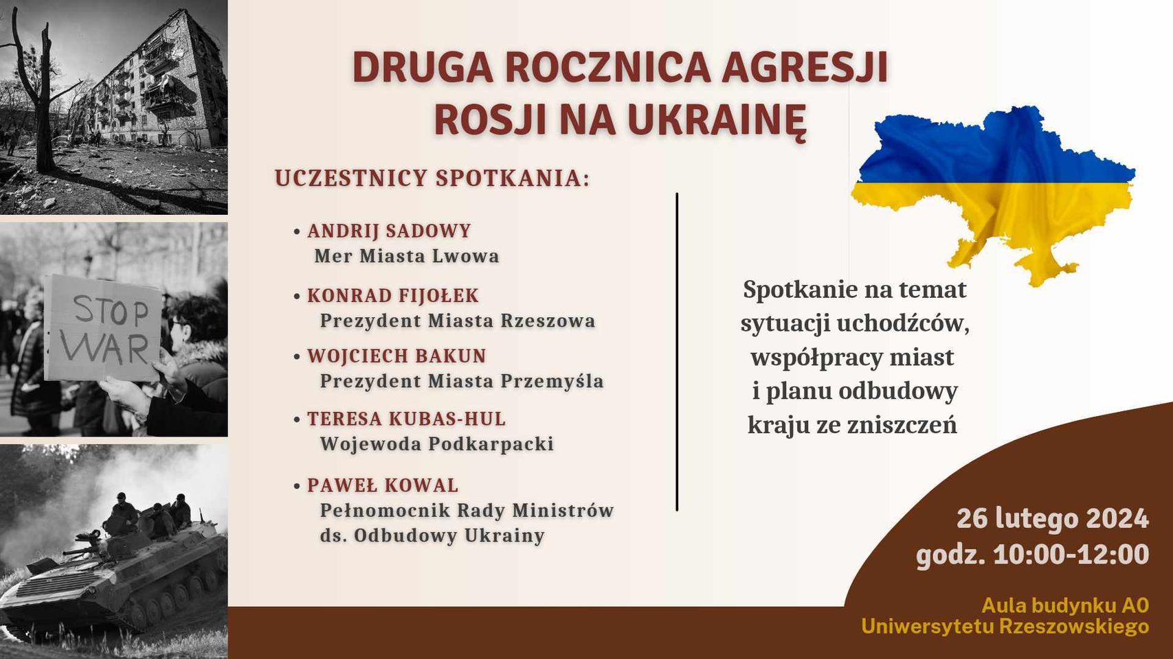 W dniu 26 lutego 2024 r. odbędzie się debata "Druga rocznica agresji Rosji na Ukrainę: sytuacja uchodźców, współpraca miast i plany odbudowy kraju", w trakcie której poruszone zostaną kwestie współpracy ukraińsko-polskiej w różnych wymiarach.