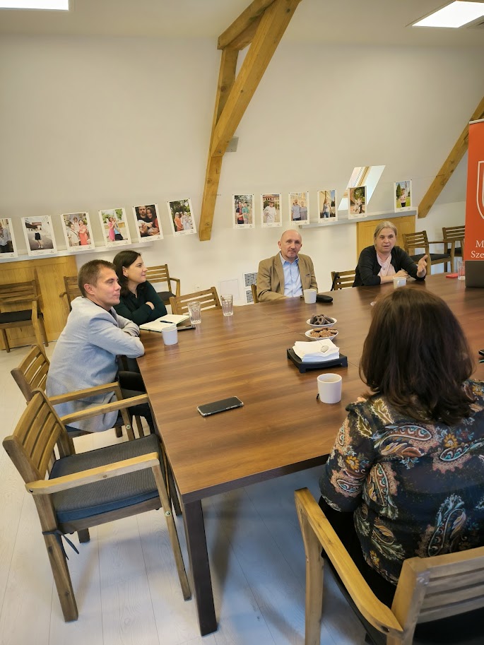 W dniu 15 października 2024 r. dr hab. inż. Grzegorz Bonusiak, prof. UR; dr hab. Tomasz Koziełło, prof. UR; dr Zofia Sawicka i mgr Magdalena Biernacka w ramach projektu „Migranci z Ukrainy w województwie podkarpackim. Implikacje społeczno-gospodarcze” - RID/SP/0011/2024/1 (zadanie 12: Polityka integracyjna wobec migrantów z Ukrainy w skali lokalnej, regionalnej i krajowej) gościli w siedzibie Magyar Máltai Szeretetszolgálat – Służby Charytatywnej Zakonu Maltańskiego (Węgry), będącego wyspecjalizowanym organem Suwerennego Rycerskiego Zakonu Szpitalników Świętego Jana, z Jerozolimy, z Rodos i z Malty. Organizacja ta jest obecnie koordynatorem pomocy kierowanej przez państwo węgierskie do uchodźców z Ukrainy, w szczególności w zakresie pomocy finansowej oraz zapewnienia miejsc pobytu. W zakresie swych działań skierowanych do uchodźców pozyskuje i wykorzystuje także fundusze z programów Unii Europejskiej. Pani Dyrektor Centrum Pomocy w Peczu Ewa Koska przedstawiła: