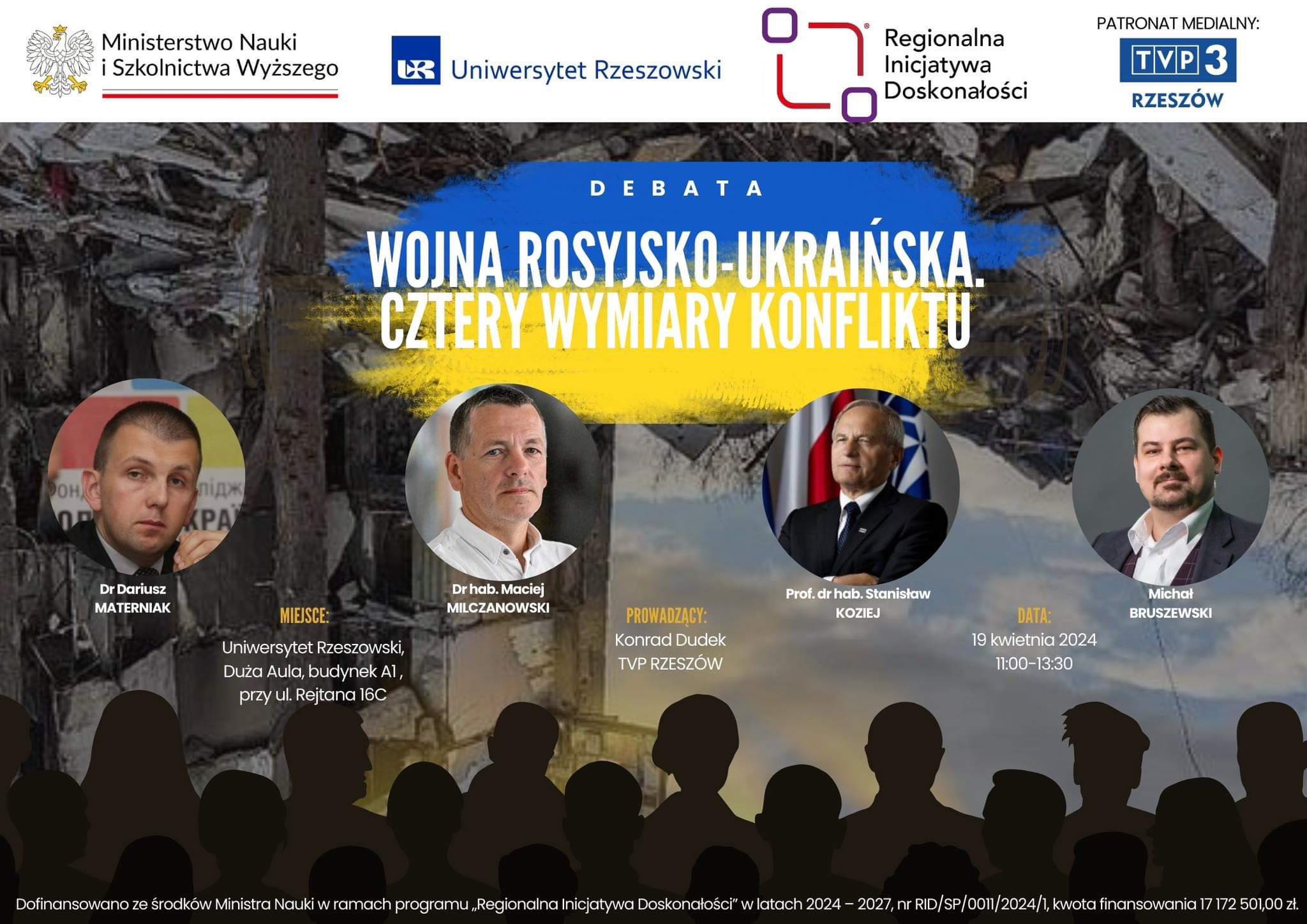 Zapraszamy na debatę "Wojna rosyjsko-ukraińska. Cztery wymiary konfliktu", która odbędzie się na Uniwersytecie Rzeszowskim 19 kwietnia o 11:00, w auli budynku A1.