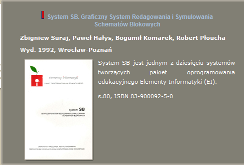 - Suraj, Z., Hałys, P., Komarek, B., Płoucha, R.: System SB. Graficzny system redagowania i symulowania schematów blokowych, Uniwersytet Wrocławski - Instytut Informatyki, Ogólnopolska Fundacja Edukacji Komputerowej - Oddział Wielkopolski, Wrocław-Poznań, 1993, stron 80.
