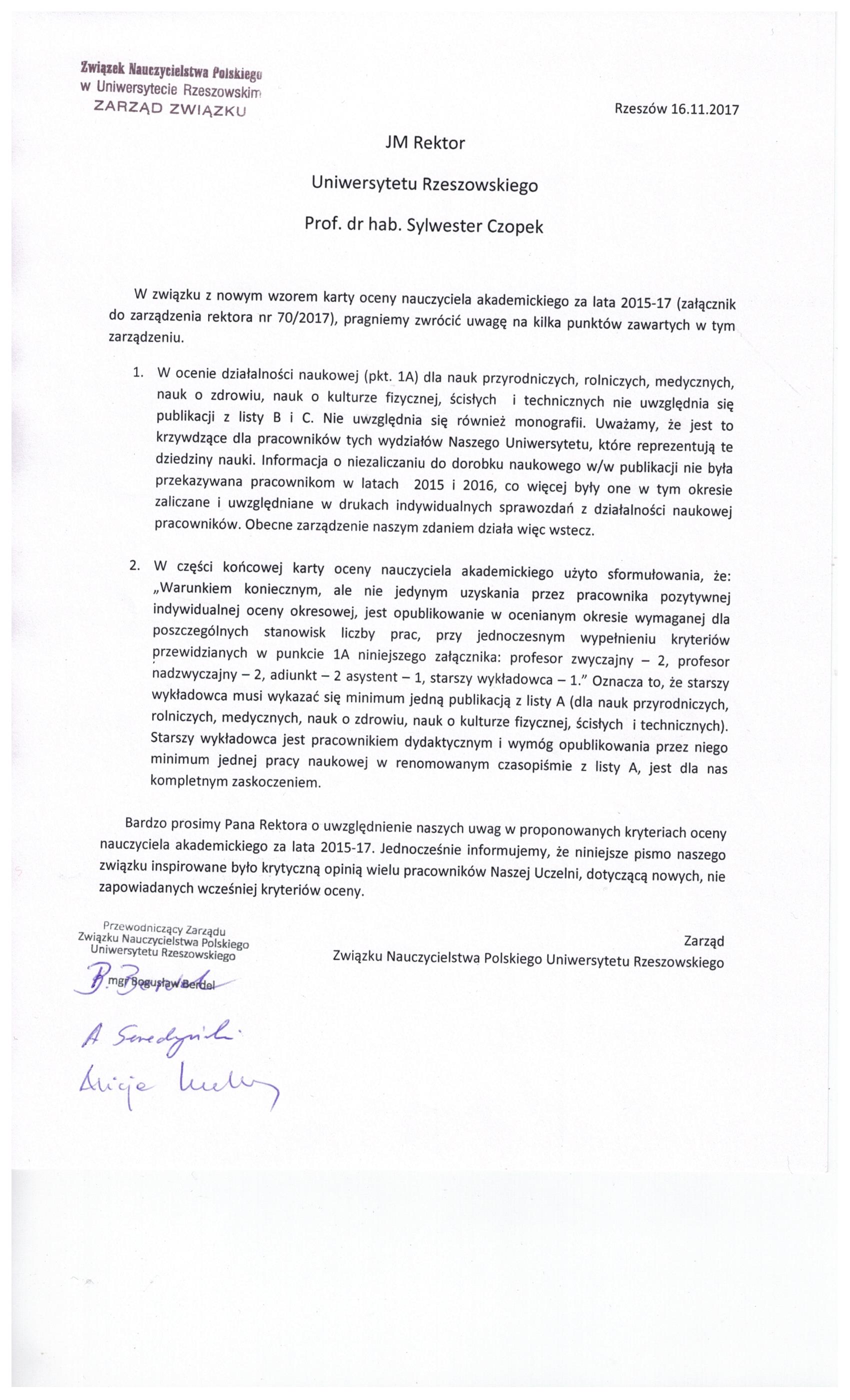 Odpowiedź Pana Rektora dotyczą nowej karty oceny nauczyciela akademickiego za lata 2015-2017 tutaj