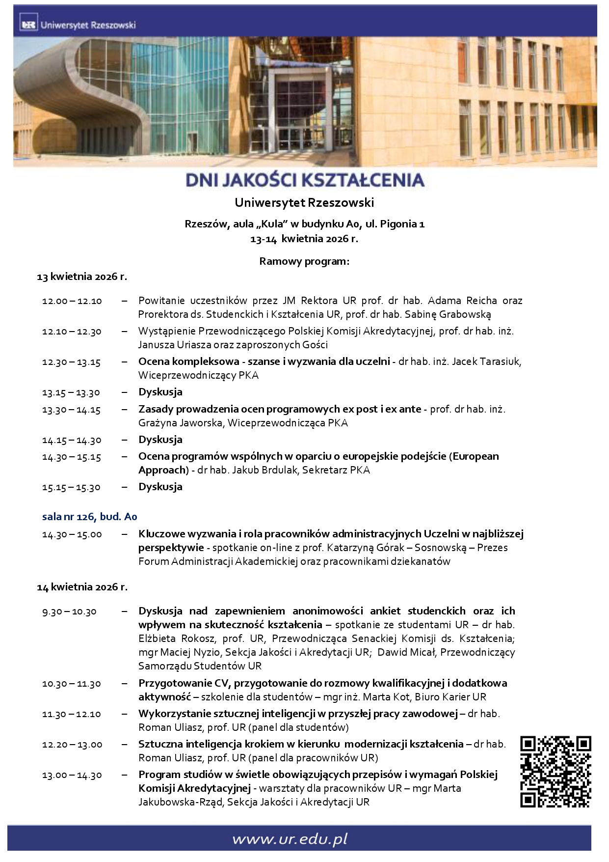 Dni Jakości Kształcenia w Uniwersytecie Rzeszowskim (13-14 kwietnia 2026 r.)