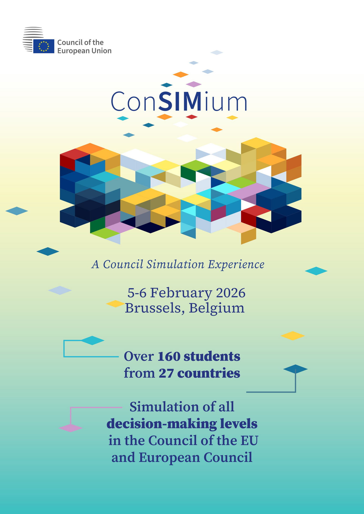 Rada Unii Europejskiej we współpracy z KRASP po raz czwarty organizuje projekt ConSIMium dla studentów (obywateli UE) polegający na przeprowadzeniu symulacji pracy Rady - szczegóły znajdują się w załączeniu. Realizacja szkolenia odbędzie się w terminie 5-6 lutego 2026 r. w Brukseli. Koszty podróży (4 i 7 lutego 2026 r., wyjazd/powrót musi nastąpić z/do miasta, w którym znajduje się uczelnia macierzysta studenta) oraz zakwaterowania (3 noce) zostaną pokryte z projektu.