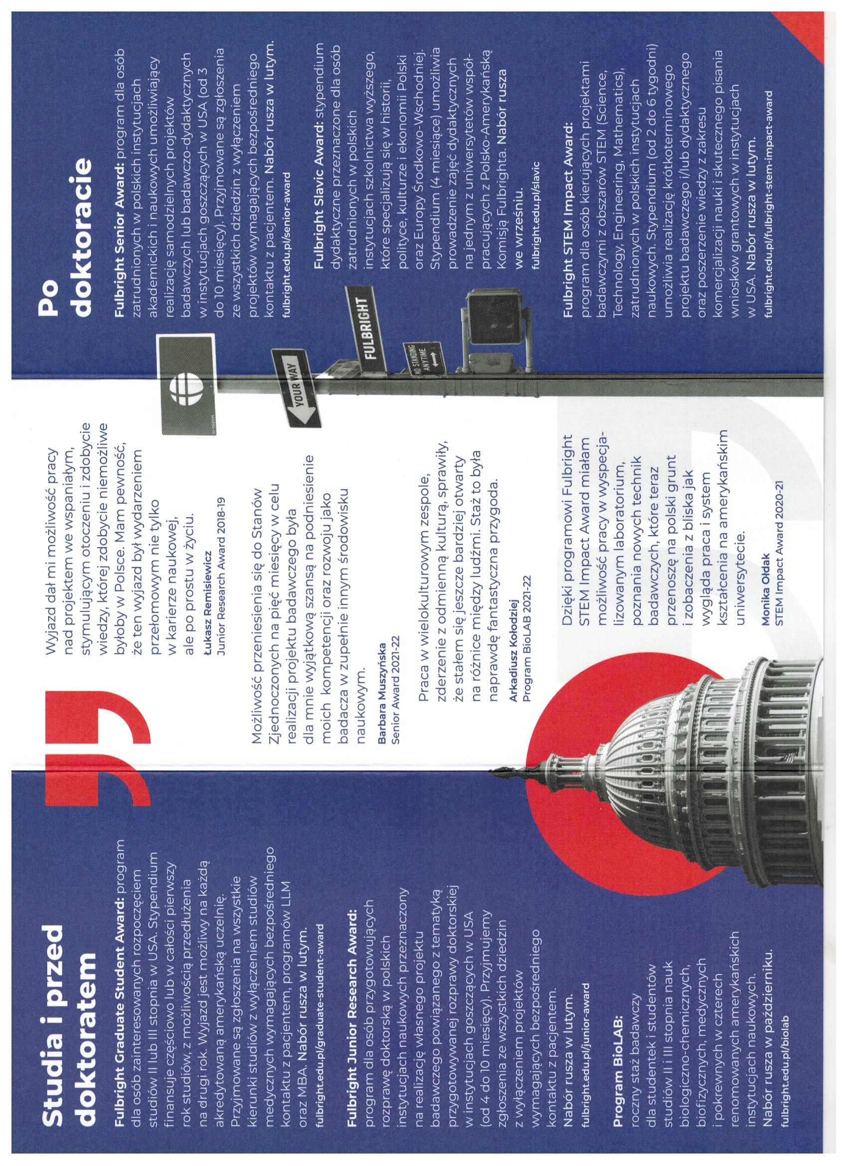 serdecznie zapraszamy na spotkania informacyjne na temat stypendiów Polsko-Amerykańskiej Komisji Fulbrighta (wyjazdy stażowe/studyjne do Stanów Zjednoczonych - dla studentów, doktorantów i doświadczonych naukowców), podczas których przybliżone zostaną m.in. wymagania formalne, zasady rekrutacji i terminy składania wniosków, orientacyjne kwoty stypendium, zasady uczestnictwa.