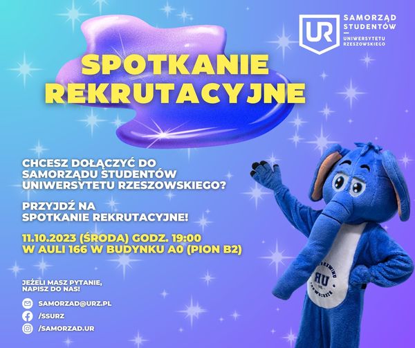 Ważne! Na wniosek Samorządu Studentów UR, 27 października (piątek) zostały ustalone godziny wolne od zajęć dydaktycznych (rektorskie) – do godziny 10:00 – dla studentów pierwszego roku I i II stopnia oraz jednolitych magisterskich studiów stacjonarnych bez obowiązku odpracowania zajęć w innym terminie.