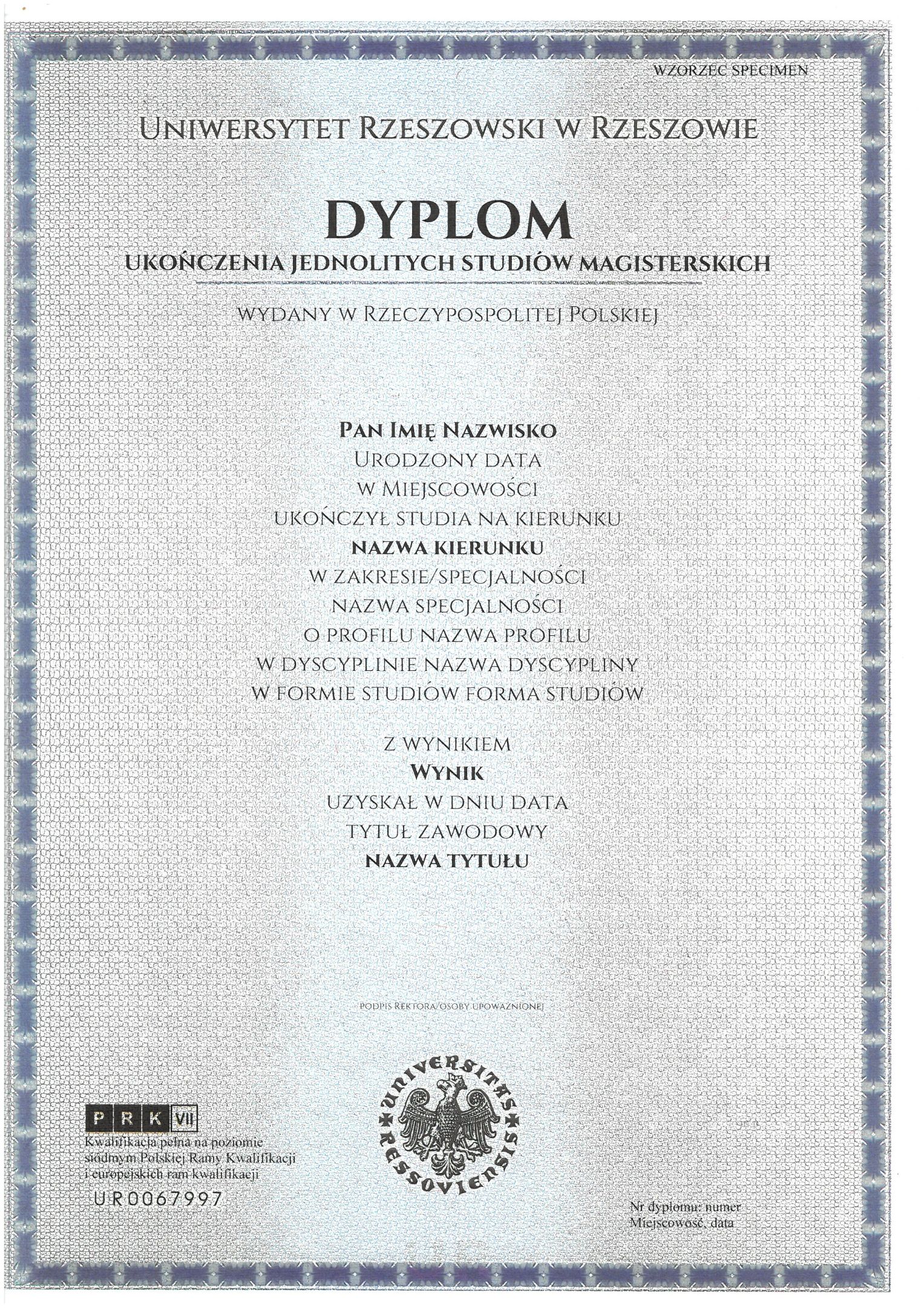 Wzór dyplomu ukończenia studiów jednolitych magisterskich