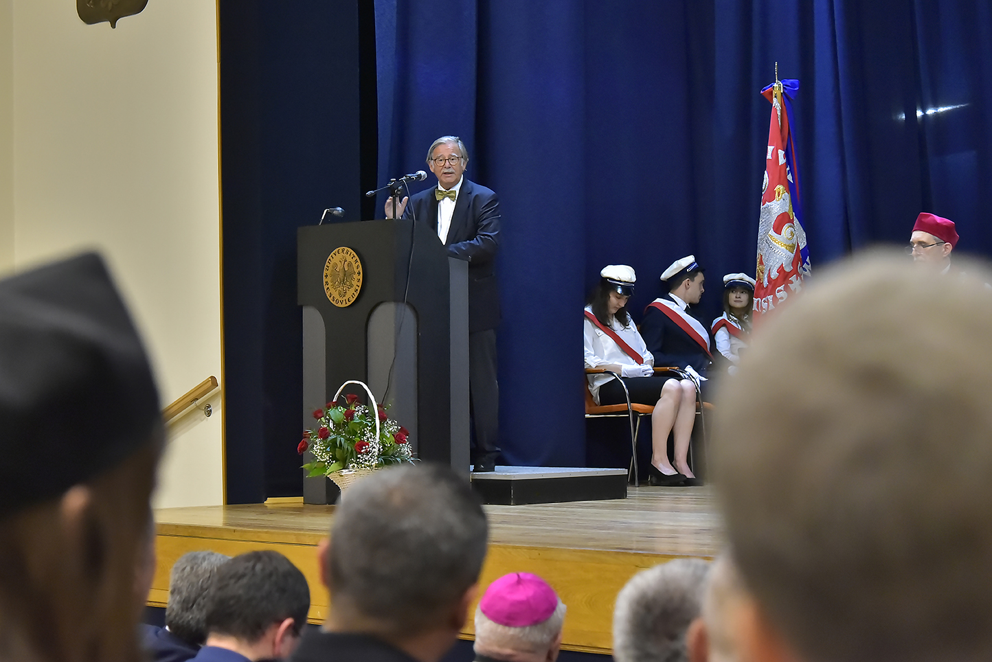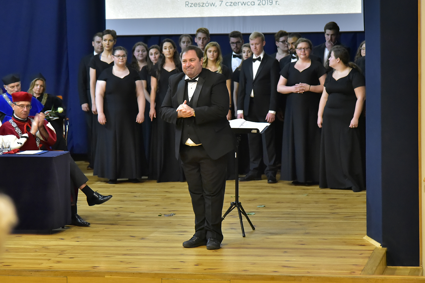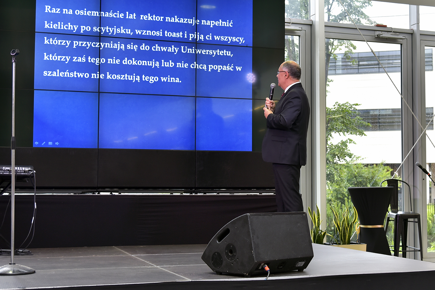 Uroczystość kontynuowana była o godzinie 18:18 w bud. A0. Zgromadzeni goście doświadczyli "zestawu unikatowego" - gwiazdą wieczoru był Andrzej Poniedzielski, a jako jego support "Wykład z gruntu akademicki" wygłosił JM prof. dr hab. Sylwester Czopek, Rektor UR, który cytując Herodota powiedział, że ...