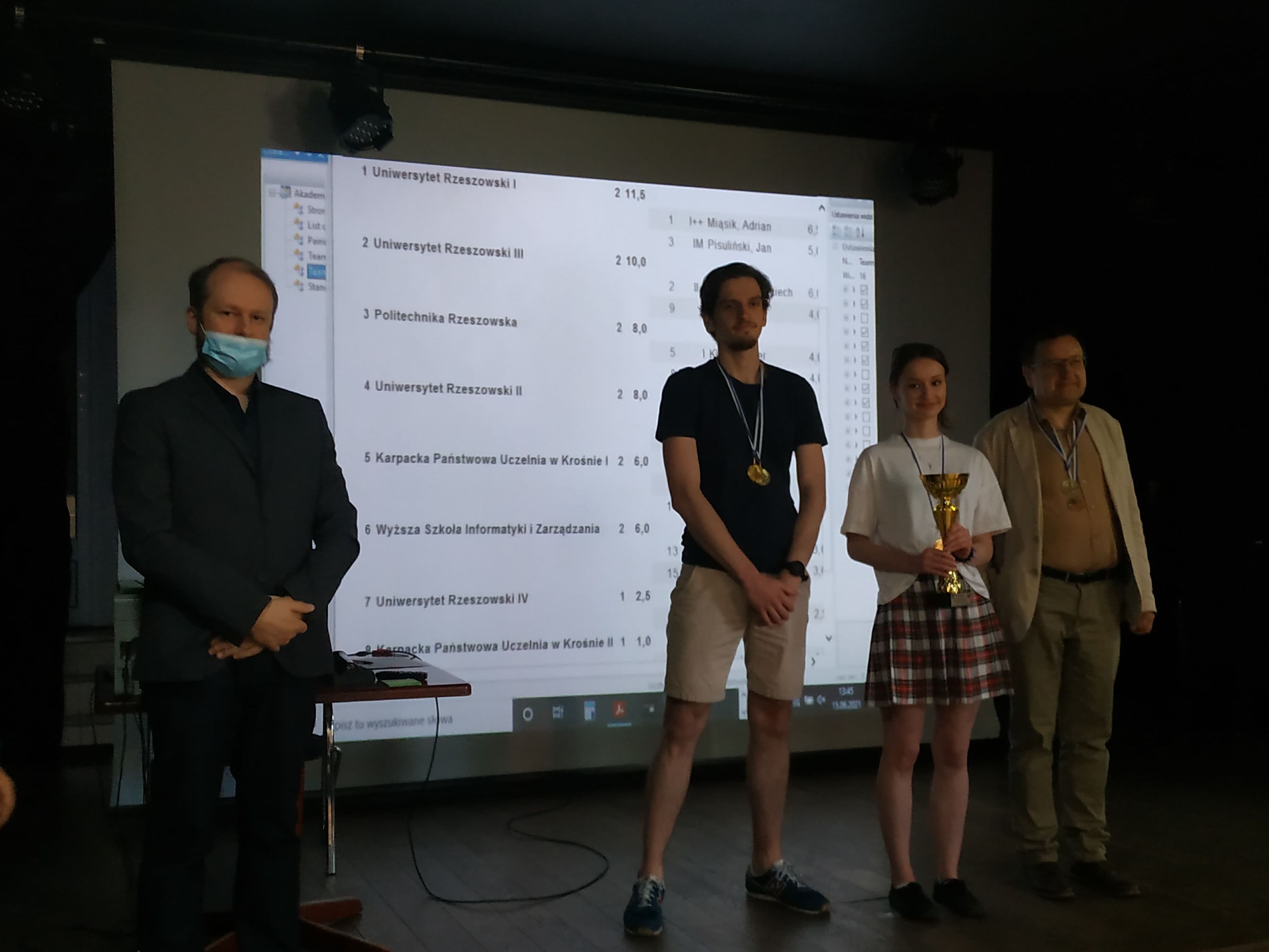 Po raz pierwszy w dwudziestodwuletniej historii tych rozgrywek, szachiści Klubu Uczelnianego AZS Uniwersytetu Rzeszowskiego wywalczyli trzy pierwsze miejsca w klasyfikacji indywidualnej i złoty (UR I) i srebrny (UR III) medal w klasyfikacji drużynowej, oraz IV miejsce zajął UR II potwierdzając tym samym, swój prymat w szachach akademickich na Podkarpaciu.