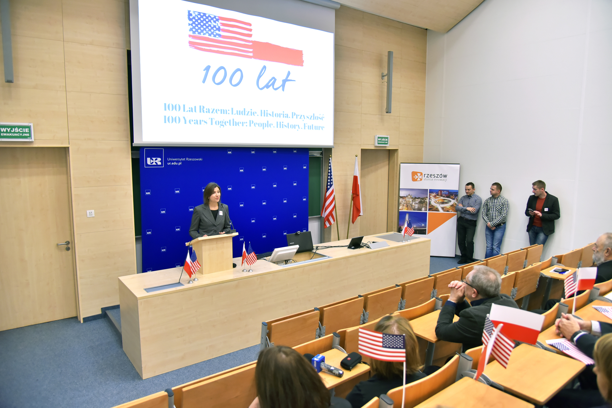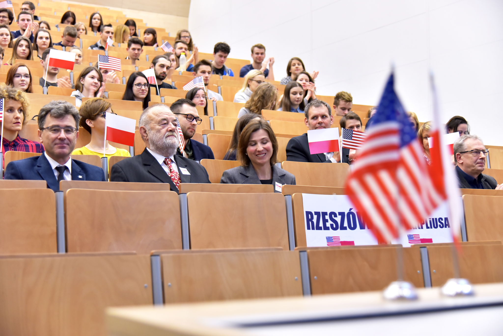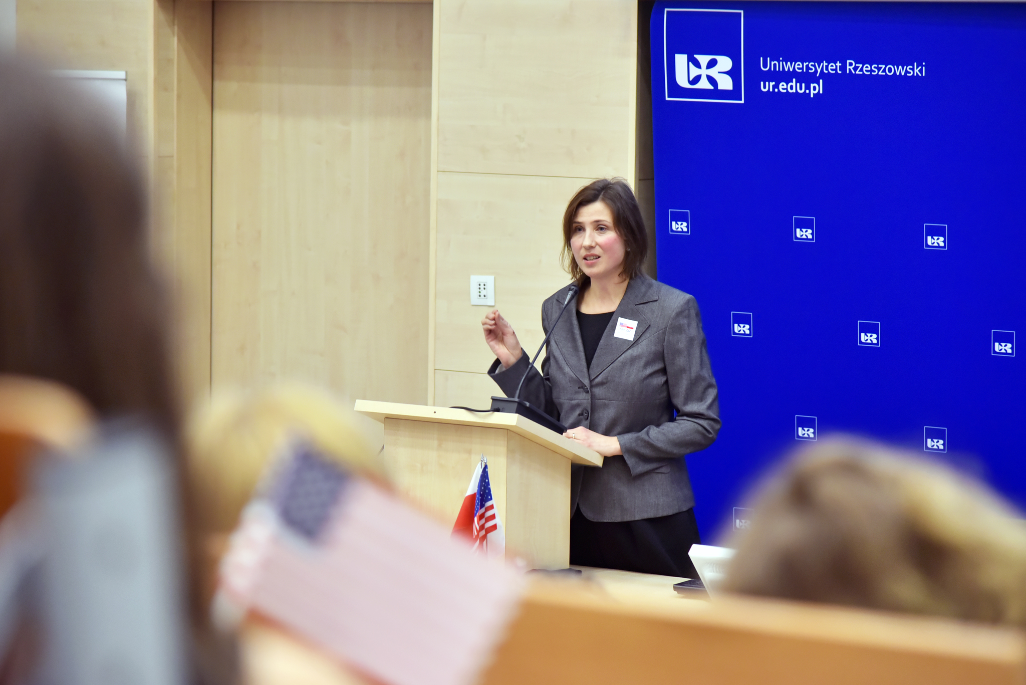 6 grudnia 2017 r. w Uniwersytecie Rzeszowskim odbyło się jedno z organizowanych w całej Polsce spotkań z przedstawicielami służb dyplomatycznych USA. Gościem w naszej uczelni była Pani Konsul - Pamnela de Volder. Ze strony UR w spotkaniu, poza liczną grupą studentów i pracowników uczestniczyli: prof. Marek Koziorowski, Prorektor ds. Nauki i Współpracy z Zagranicą oraz dr hab., prof. UR Wojciech Walat, Prorektor ds. Studenckich i Kształcenia. Spotkanie prowadziła Pani dr hab. prof. UR Agnieszka Uberman z Instytutu Filologii Angielskiej.