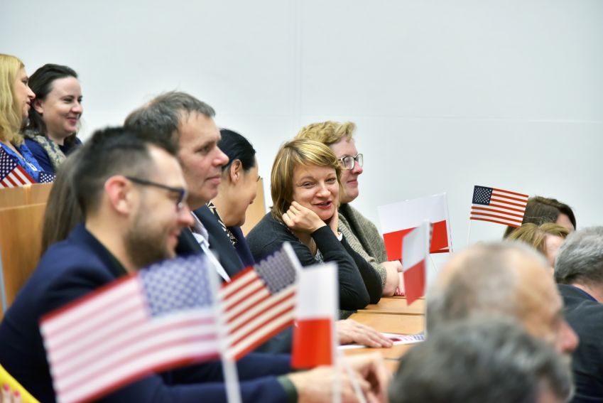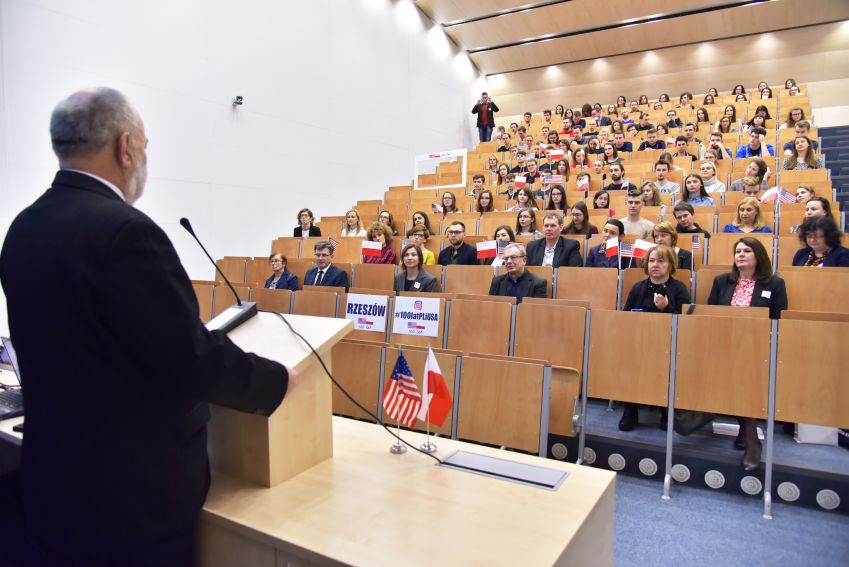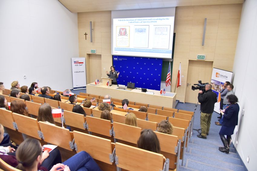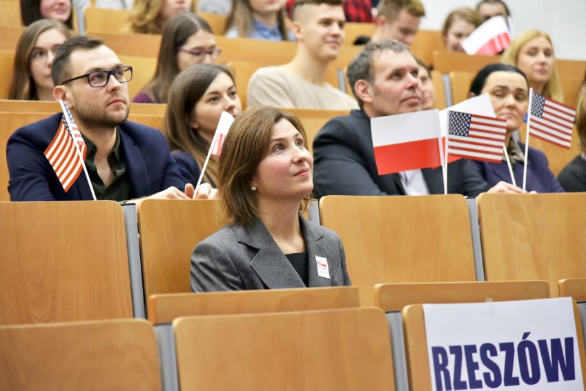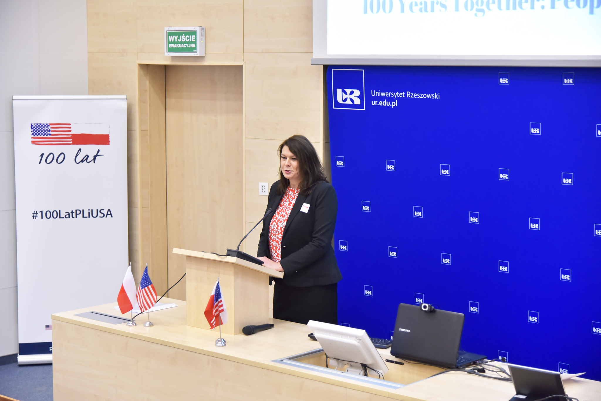 6 grudnia 2017 r. w Uniwersytecie Rzeszowskim odbyło się jedno z organizowanych w całej Polsce spotkań z przedstawicielami służb dyplomatycznych USA. Gościem w naszej uczelni była Pani Konsul - Pamnela de Volder. Ze strony UR w spotkaniu, poza liczną grupą studentów i pracowników uczestniczyli: prof. Marek Koziorowski, Prorektor ds. Nauki i Współpracy z Zagranicą oraz dr hab., prof. UR Wojciech Walat, Prorektor ds. Studenckich i Kształcenia. Spotkanie prowadziła Pani dr hab. prof. UR Agnieszka Uberman z Instytutu Filologii Angielskiej.
