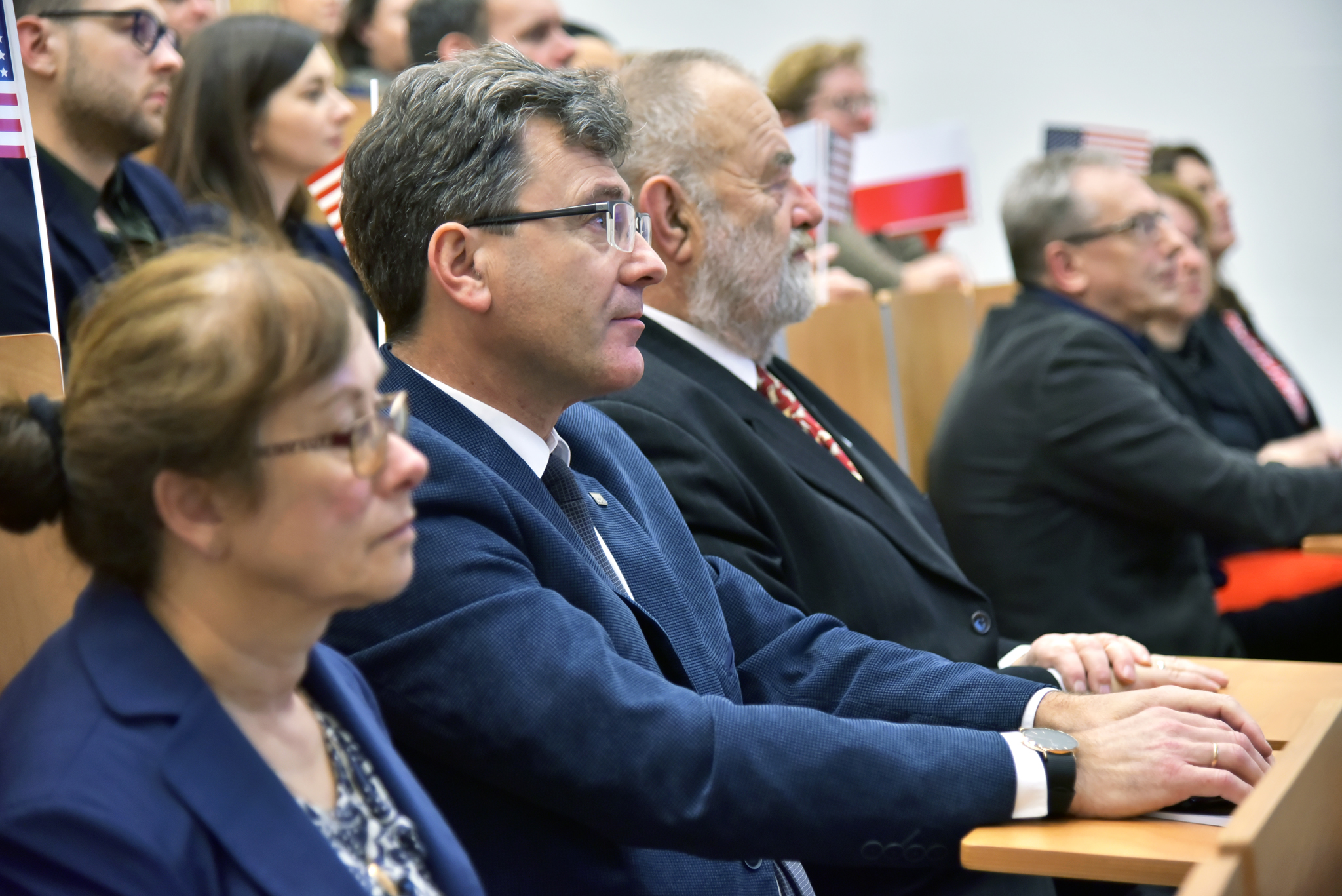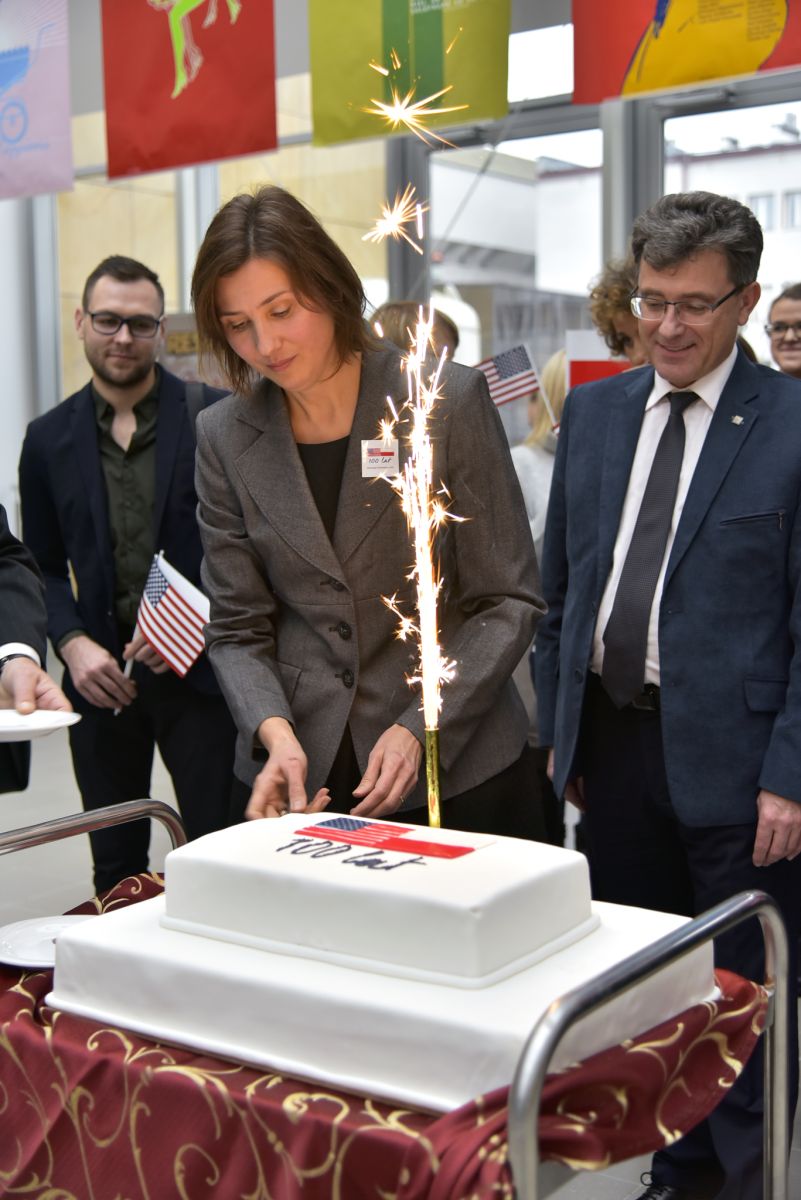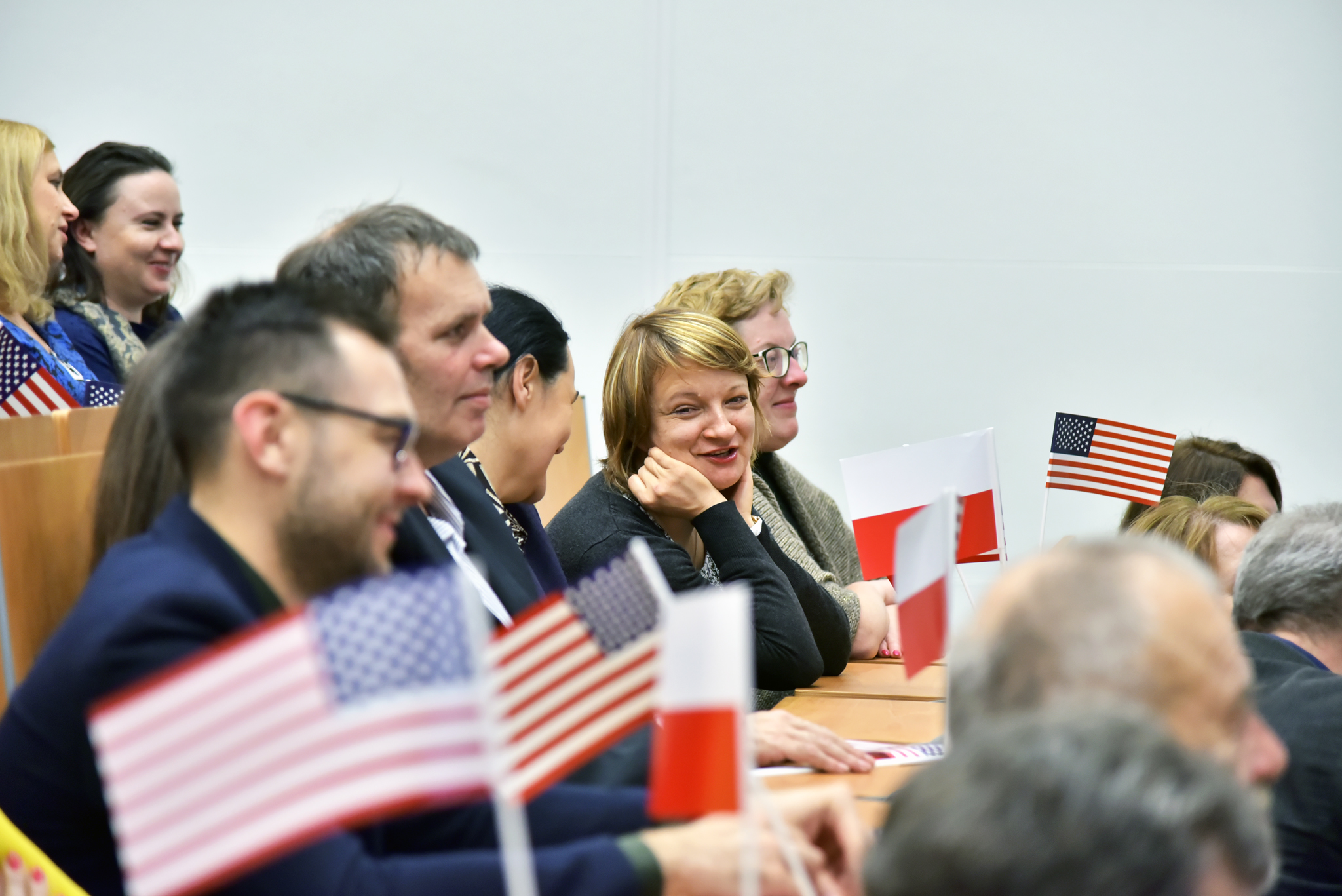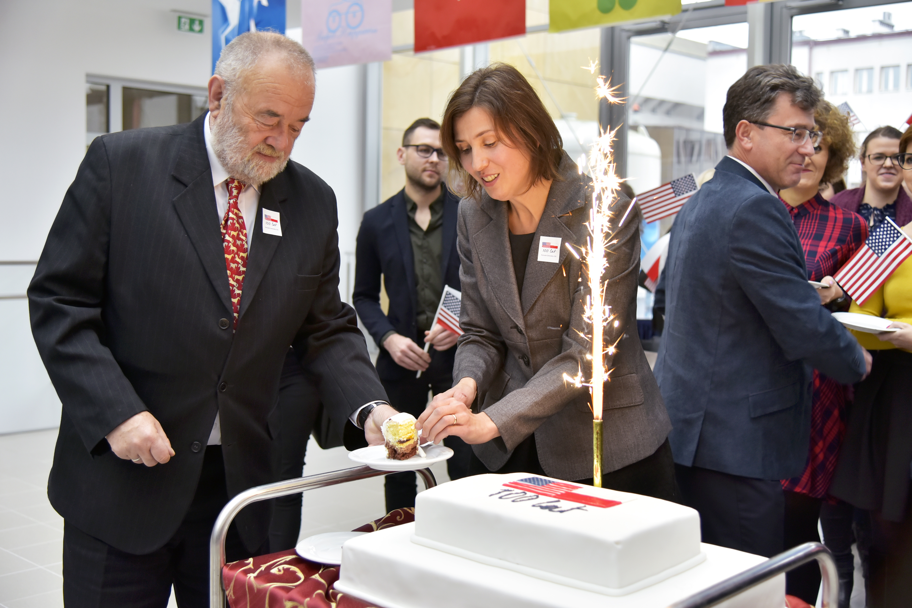 Jednym z elementów spotkania było połączenie z Ambasadorem USA Panem Paulem Jonesem, który przedstawił uczestników spotkania w poszczególnych lokalizacjach w całej Polsce oraz opowiedział o historii wzajemnych relacji na przestrzeni ostatnich 100 lat.