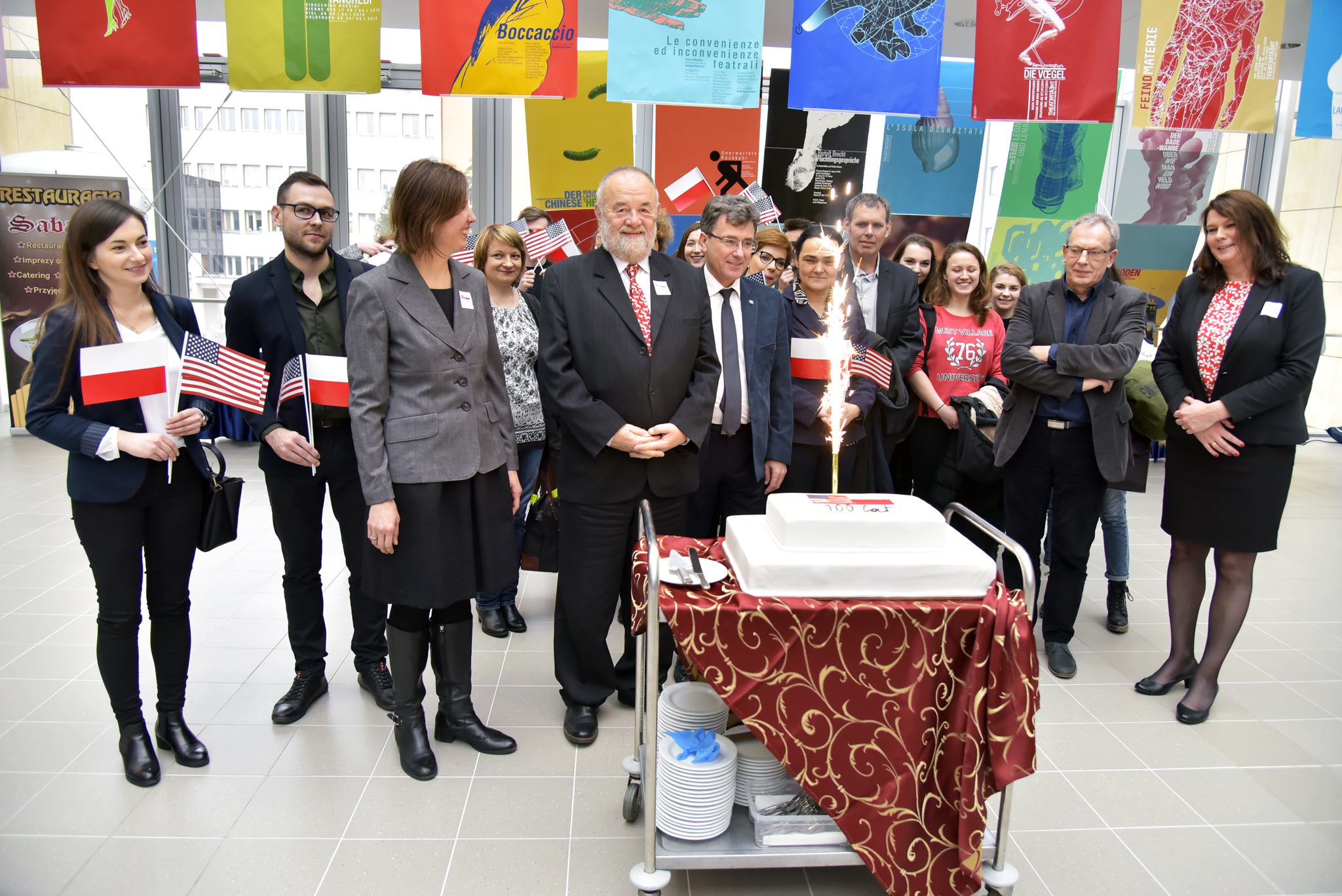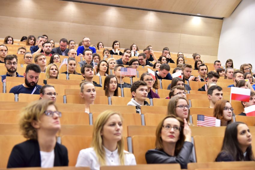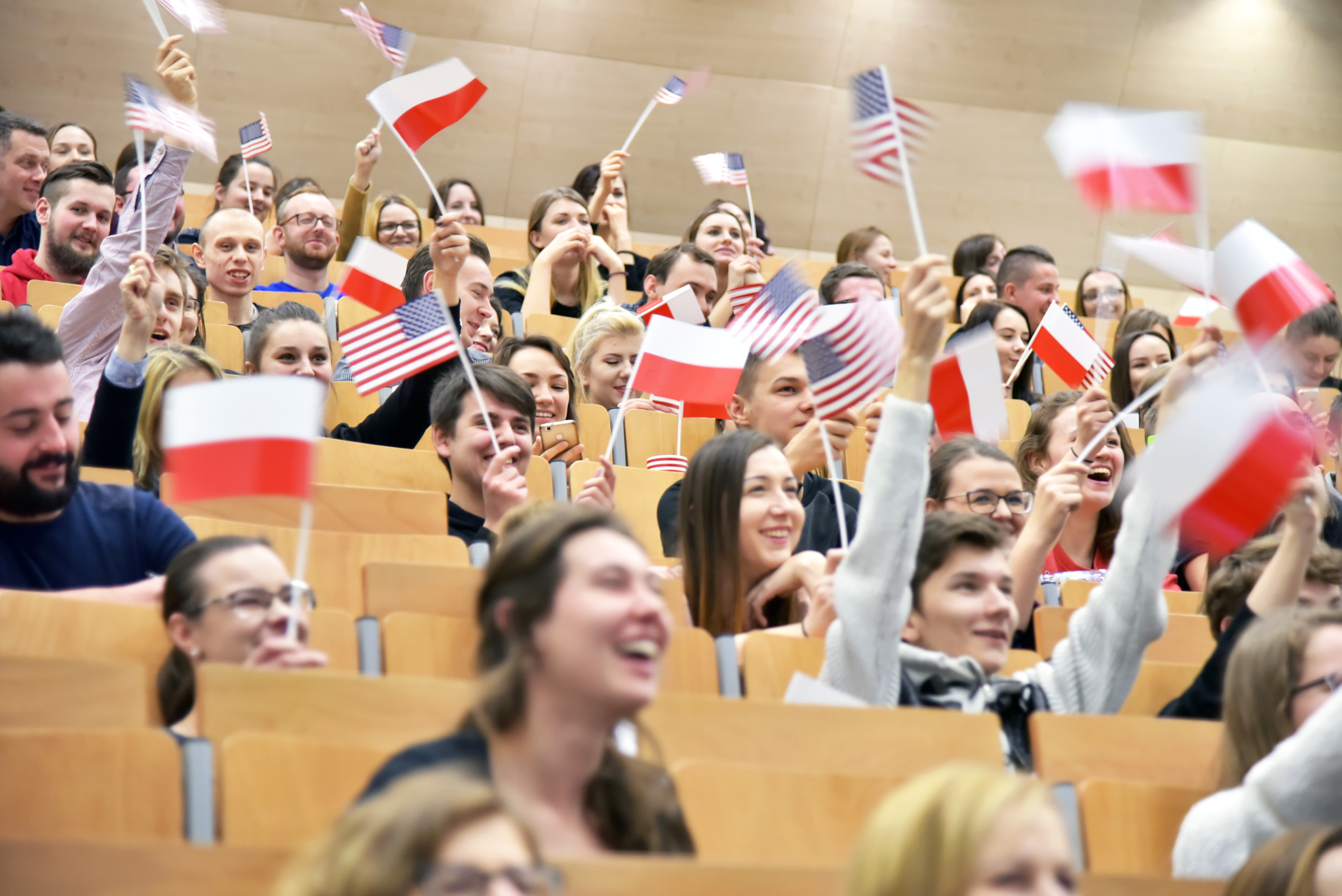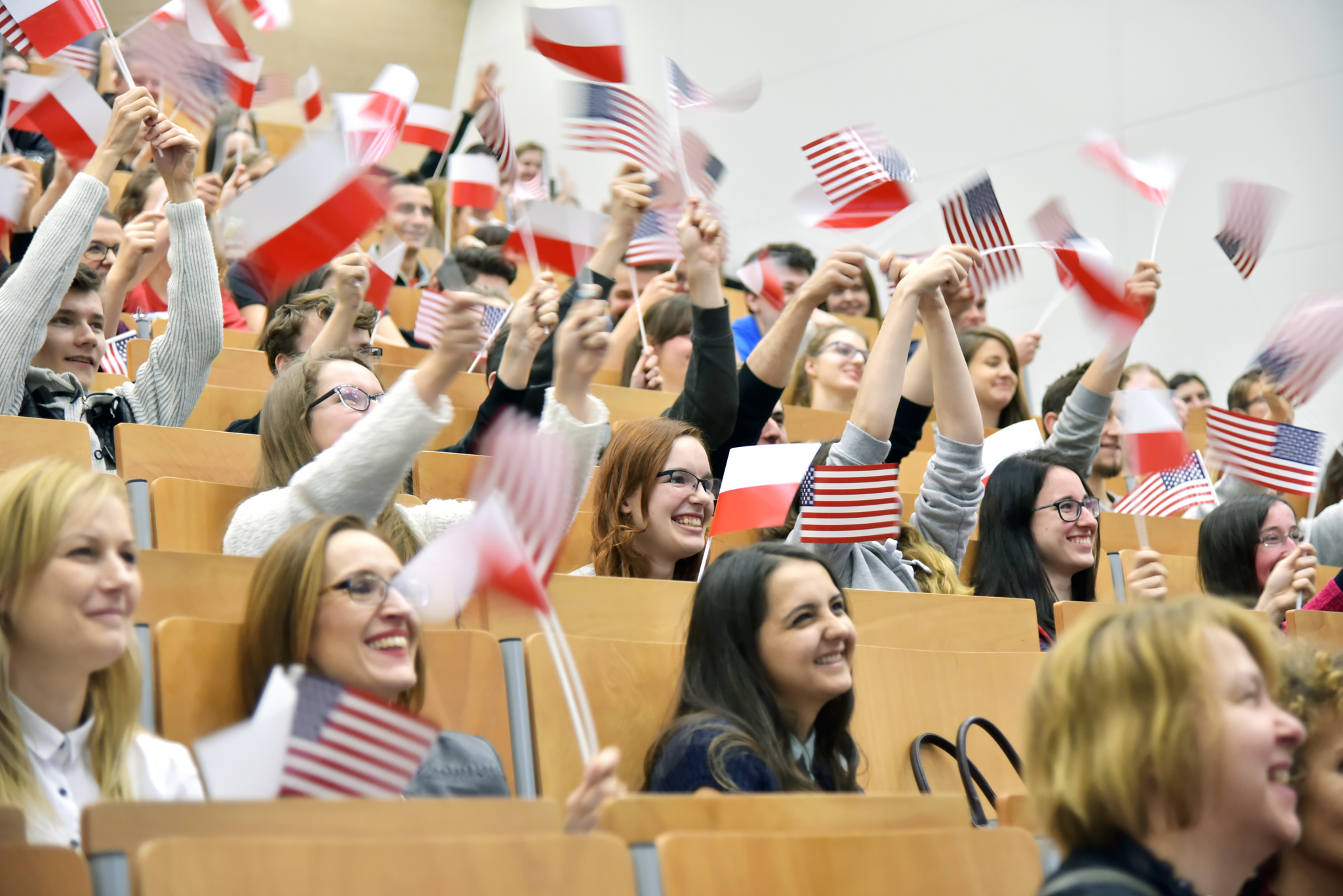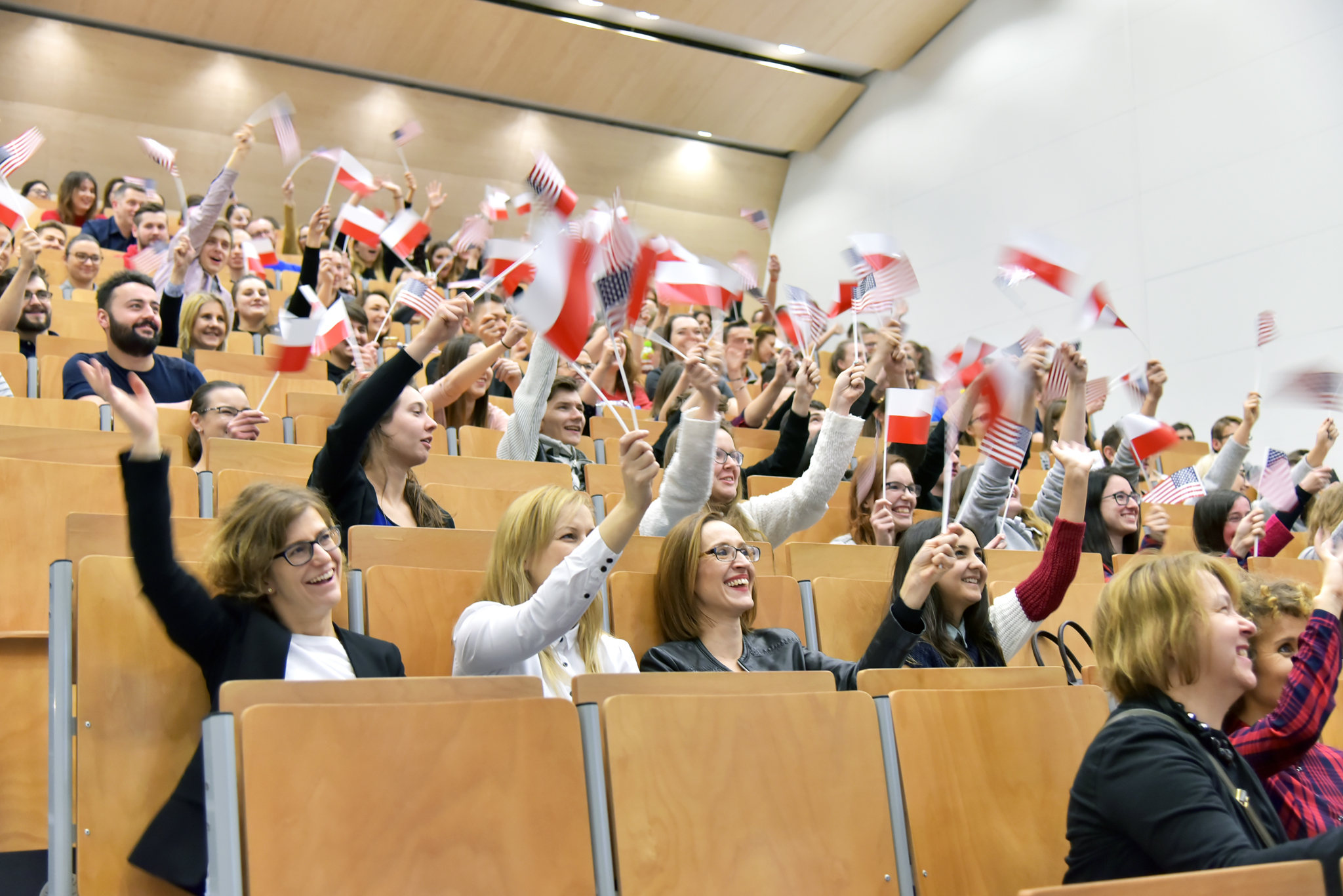 Jednym z elementów spotkania było połączenie z Ambasadorem USA Panem Paulem Jonesem, który przedstawił uczestników spotkania w poszczególnych lokalizacjach w całej Polsce oraz opowiedział o historii wzajemnych relacji na przestrzeni ostatnich 100 lat.