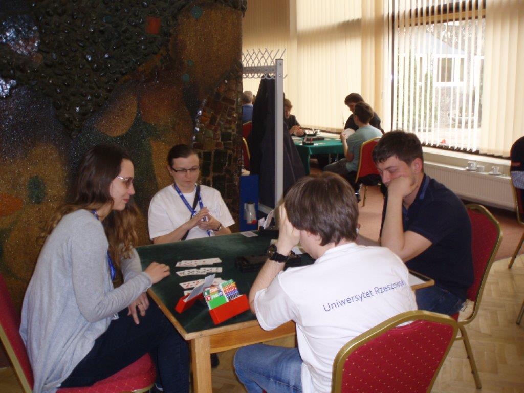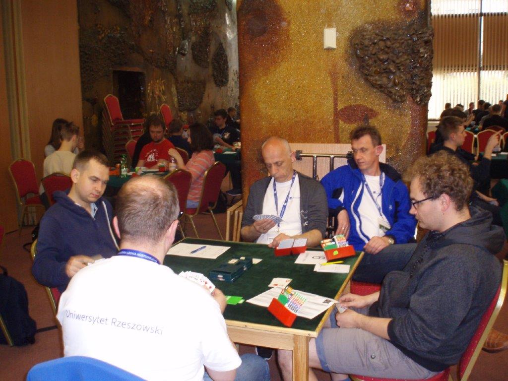 W dniach 3 do 5 maja br., w Warszawie odbyły się AMP w Brydżu Sportowym z udziałem reprezentacji Uniwersytetu Rzeszowskiego, jako jedynego przedstawiciela ze szkół wyższych Podkarpacia. Nasi brydżyści wystąpili w składzie: dr Anna Cisek, mgr Ilona Bobko, prof. Aleksander Bobko, dr Adam Najdecki, mgr Tadeusz Marut, mgr Janusz Słonina, Mateusz Kopko - student 1 roku II stp. Informatyki i mgr Adam Maryniak, opiekun i grający zawodnik Sekcji Brydża Sportowego w Klubie Uczelnianym AZS UR.