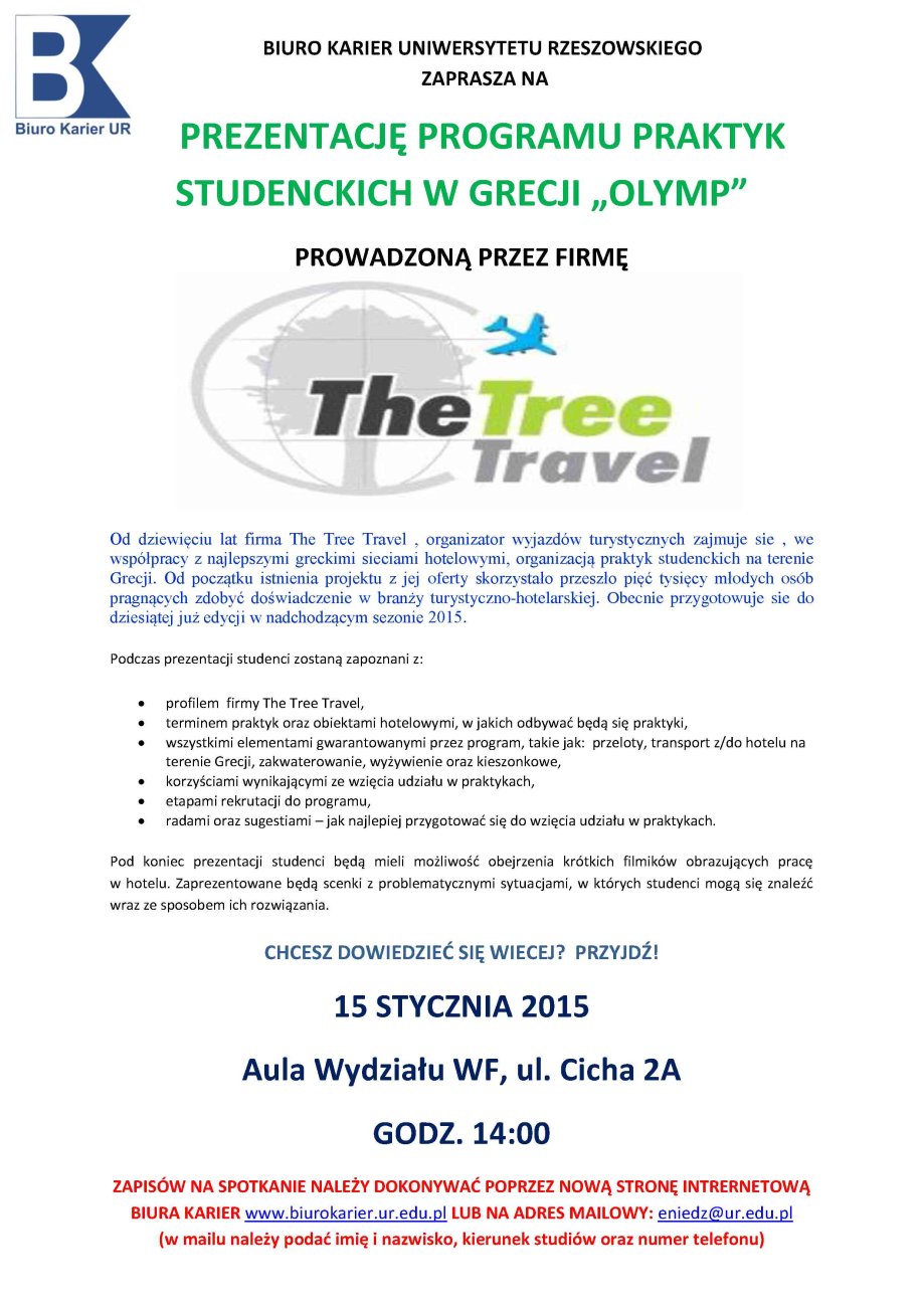 BIURO KARIER UNIWERSYTETU RZESZOWSKIEGO ZAPRASZA NA PREZENTACJĘ PROGRAMU PRAKTYK STUDENCKICH W GRECJI „OLYMP”