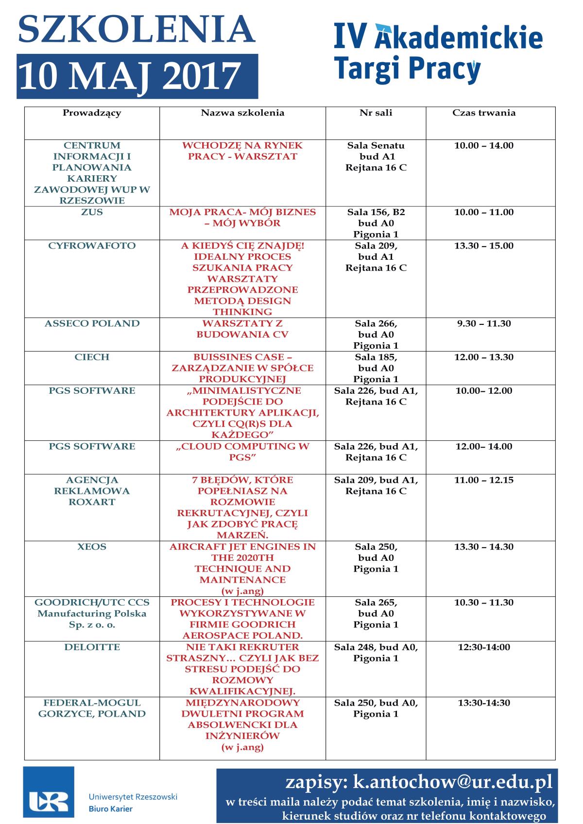Biuro Karier UR zaprasza do udziału w szkoleniach i warsztatach organizowanych podczas IV Akademickich Targów Pracy