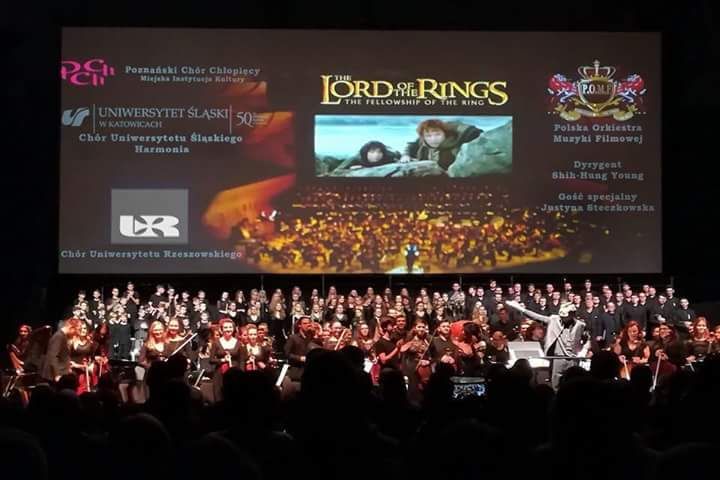 Chór Wydziału Muzyki miał przyjemność i zaszczyt wziąć udział w niezwykłej trasie koncertowej, która obejmowała cykl projekcji filmu ,,Władca Pierścieni" z muzyką na żywo. Twórcą muzyki jest Howard Shore – kanadyjski kompozytor muzyki filmowej i dyrygent, zdobywca trzech Oscarów. Zespół przygotowany przez dr Bożenę Stasiowską-Chrobak 12 stycznia wyruszył w 14-dniową trasę: Warszawa - Wrocław - Szczecin - Katowice - Gdańsk, w której współuczestniczyli: Chór Uniwersytetu Śląskiego "Harmonia", Poznański Chór Chłopięcy oraz Polska Orkiestra Muzyki Filmowej & Przemyslaw Piotr Pasternak. Dyrygent Shih-Hung Young już na próbach zaraził wykonawców pozytywną energią, a jego profesjonalne podejście do pracy z chórem oraz orkiestrą można było zobaczyć na koncertach. W przedsięwzięciu brała również udział znana wokalistka Justyna Steczkowska. Poznanie i praca z nią były dla chórzystów ogromną przyjemnością. Występy odbywały się w największych salach widowiskowych i cieszyły się niezwykłym uznaniem publiczności. Dla Chóru Wydziału Muzyki było to całkowicie nowe doświadczenie i mamy nadzieję, że nie ostatnie!