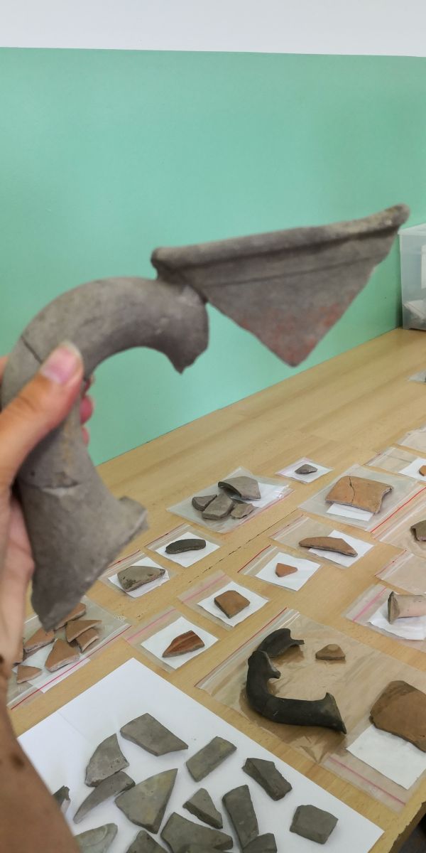- dużą serią fragmentów naczyń, wykonanych w charakterystycznym stylu, typowym dla leśnostepowej prowincji scytyjskiej.
