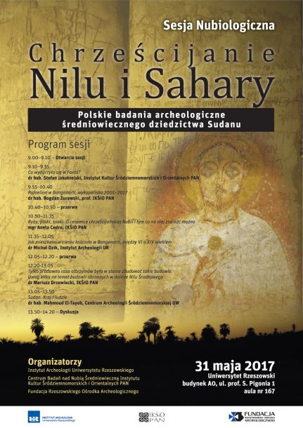 Instytut Archeologii UR zaprasza na Sesję Nubiologiczną - "Chrześcijanie Nilu i Sahary", która odbędzie się 31 maja 2017 r., w Uniwersytecie Rzeszowskim, bud. A0, ul. prof. S. Pigonia 1, Aula nr 167