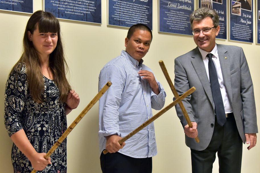 W dniach 06-14.05.2018 z wizytą na naszym Uniwersytecie przebywał Grandmaster John John Mac z Cebu na Filipinach, posiadacz czarnego pasa dzięsiątego stopnia i sześciokrotny mistrz świata w filipińskich sztukach walki, przedstawiciel federacji Cacoy Doce Pares.
