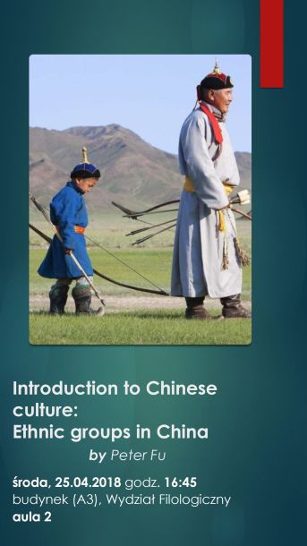 Zapraszamy na wykłady Prof. Fu Zhigang, który w najbliższą środę będzie mówił o grupach etnicznych zamieszkujących w Chinach. Kolejny wykład 09.05.2018r.