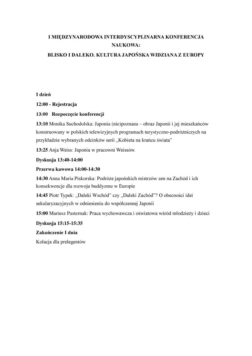 I Międzynarodowa Interdyscyplinarna Konferencja Naukowa „Blisko i daleko. Kultura japońska widziana z Europy” 23-24 czerwca 2016