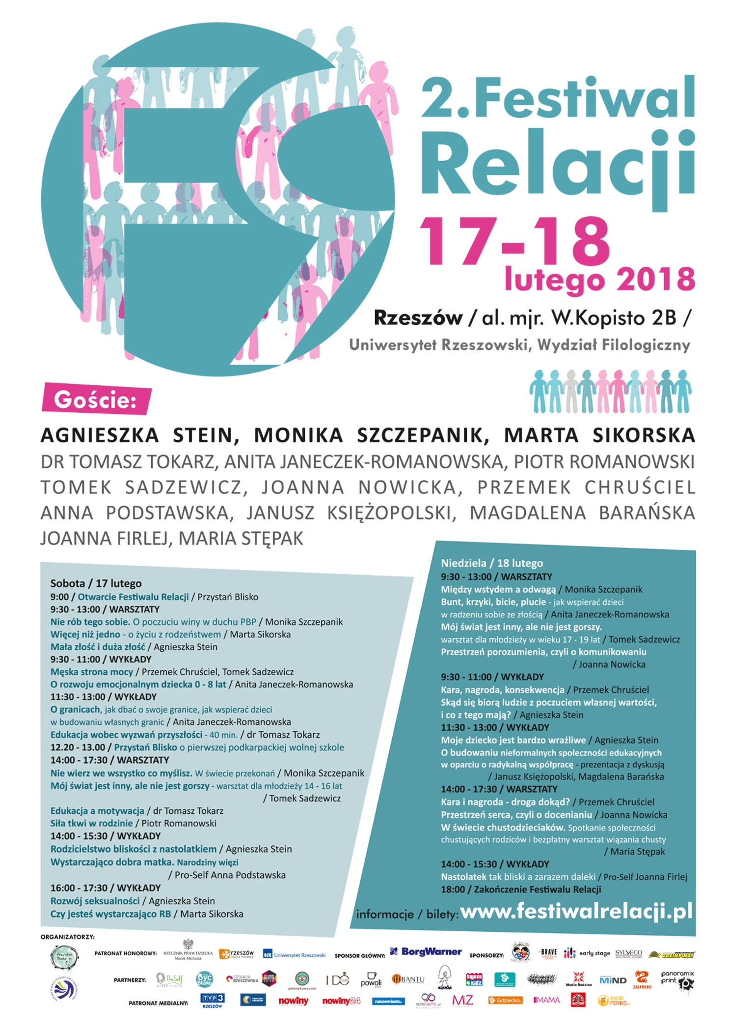 W dniach 17–18 lutego 2018 r. w budynku Wydziału Filologicznego Uniwersytetu Rzeszowskiego (al. mjr. W. Kopisto 2B w Rzeszowie) odbędzie się druga edycja Festiwalu Relacji, który szybko buduje swoją markę i skupia coraz liczniejszą publiczność (materiał organizatorów).