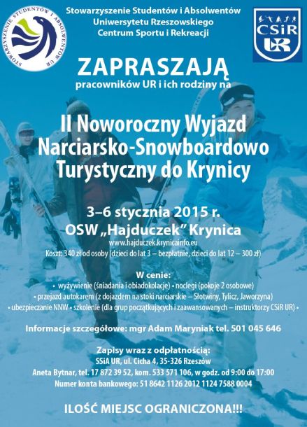 Witamy Pracowników Uniwersytetu Rzeszowskiego wraz z ich Rodzinami i zapraszamy na II Noworoczny wyjazd do Krynicy w dn.3-6.01.2015 r.,