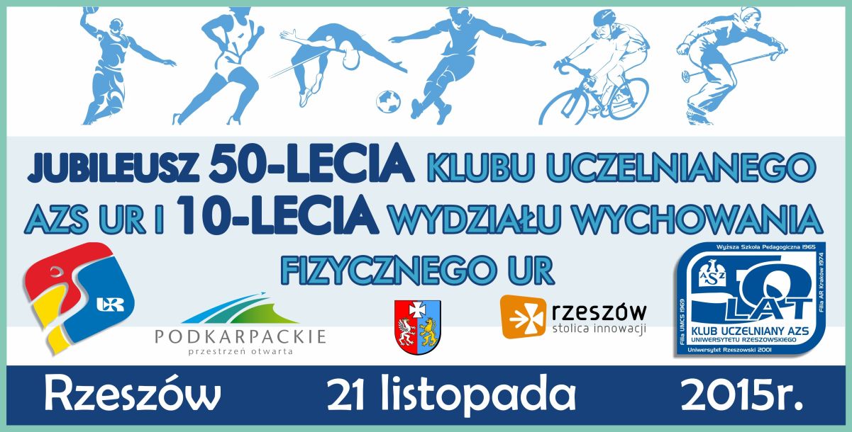 Kolegium Dziekańskie Wydziału Wychowania Fizycznego oraz Prezes KU AZS już dzisiaj zapraszają serdecznie społeczność akademicką do wspólnych obchodów 50-lecia KU AZS UR oraz 10-lecia Wydziału Wychowania Fizycznego UR, które odbędą się w dniu 21 listopada 2015 r.
