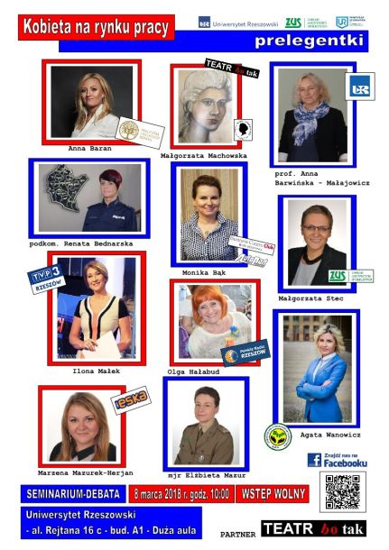 Seminarium naukowe - „ Kobieta na rynku pracy” - 8 marca 2018 r. godz. 10:00 Uniwersytet Rzeszowski – al. Rejtana 16c ( bud. A 1 – Duża aula).