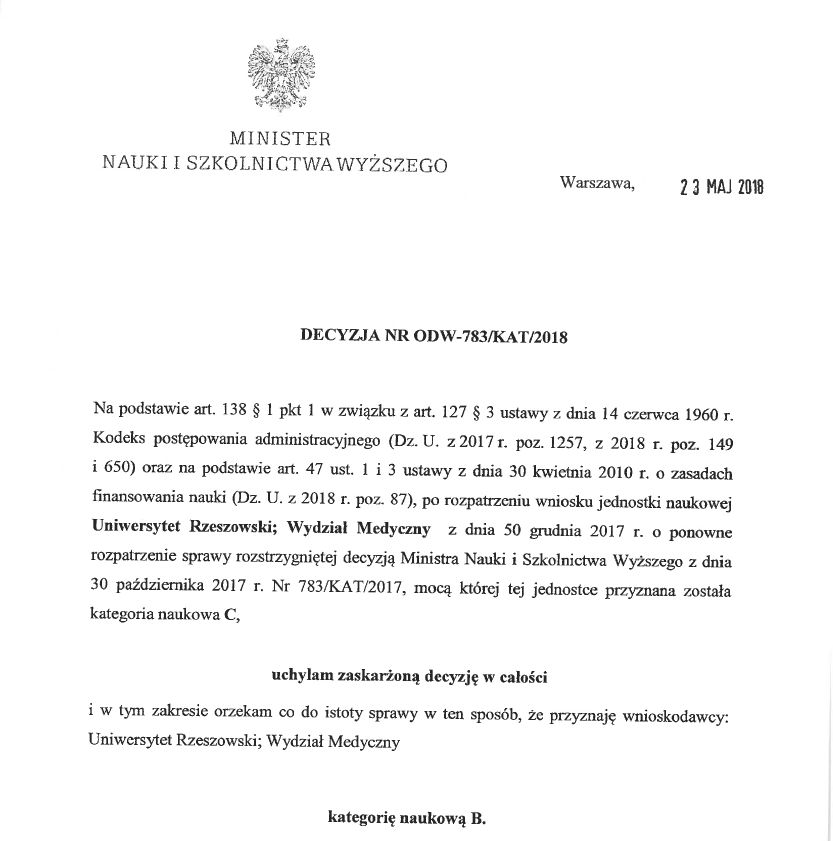 Kolejne skuteczne odwołanie - kat. B dla Wydziału Medycznego
