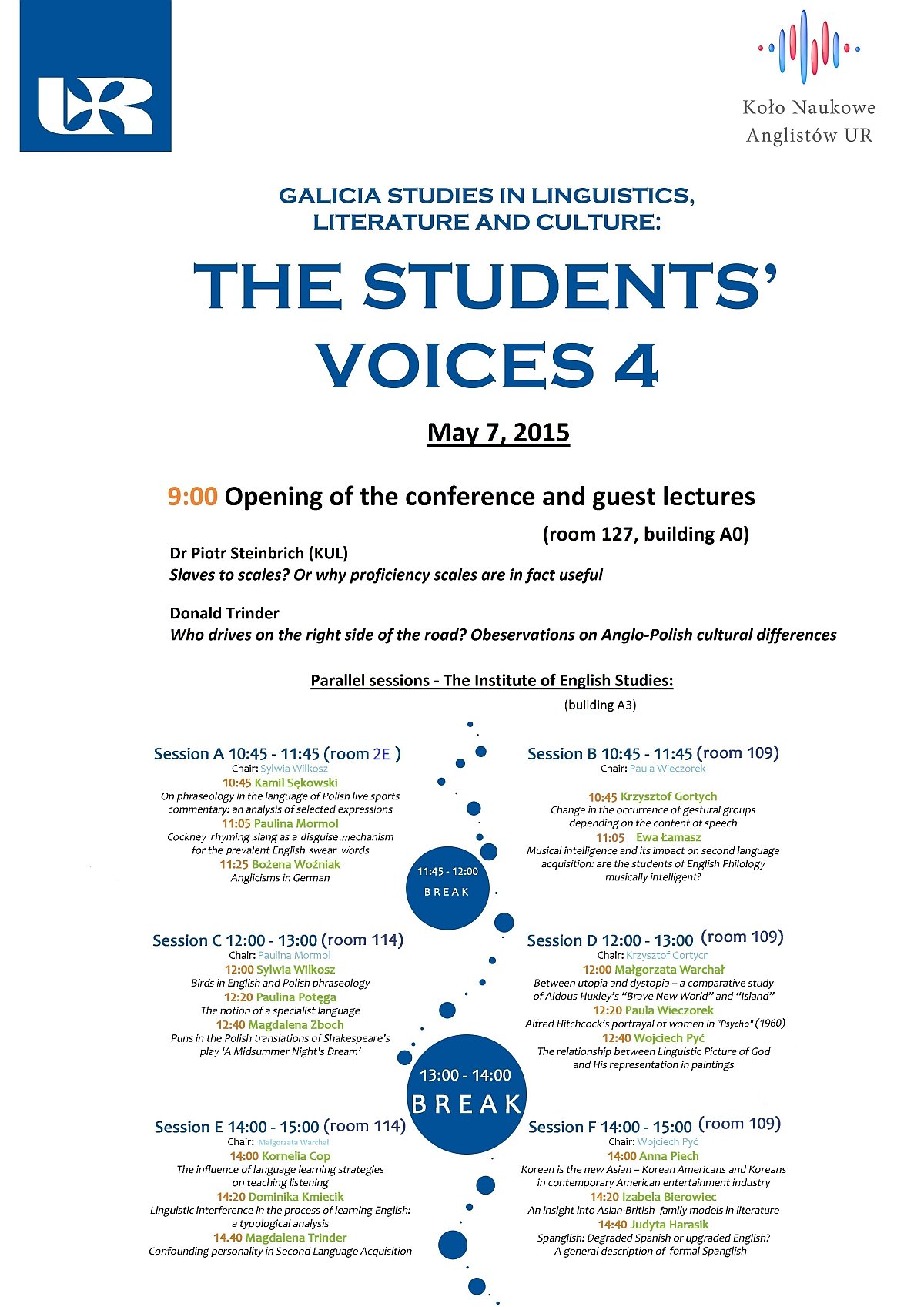 Koło Naukowe Anglistów działające przy Instytucie Filologii Angielskiej serdecznie zaprasza na 4. studencką konferencję naukową