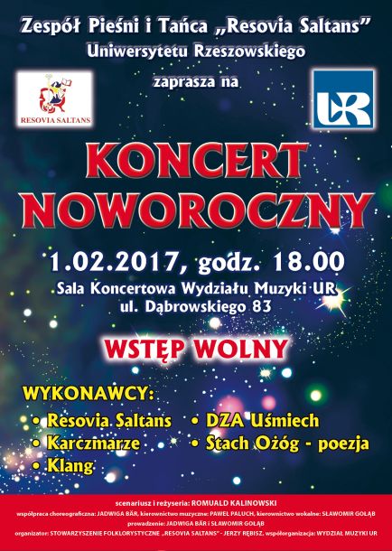 Zespół Pieśni i Tańca "Resovia Saltans" UR zaprasza na Koncert Noworoczny.