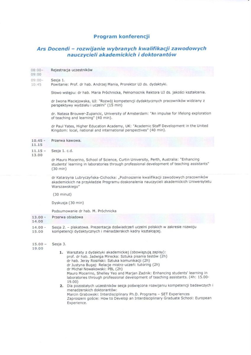 - Dr Paul Yates (Higher Educational Academy, Wielka Brytania) "Academic Staff Development in the United Kingdom: local, national and international perspectives"