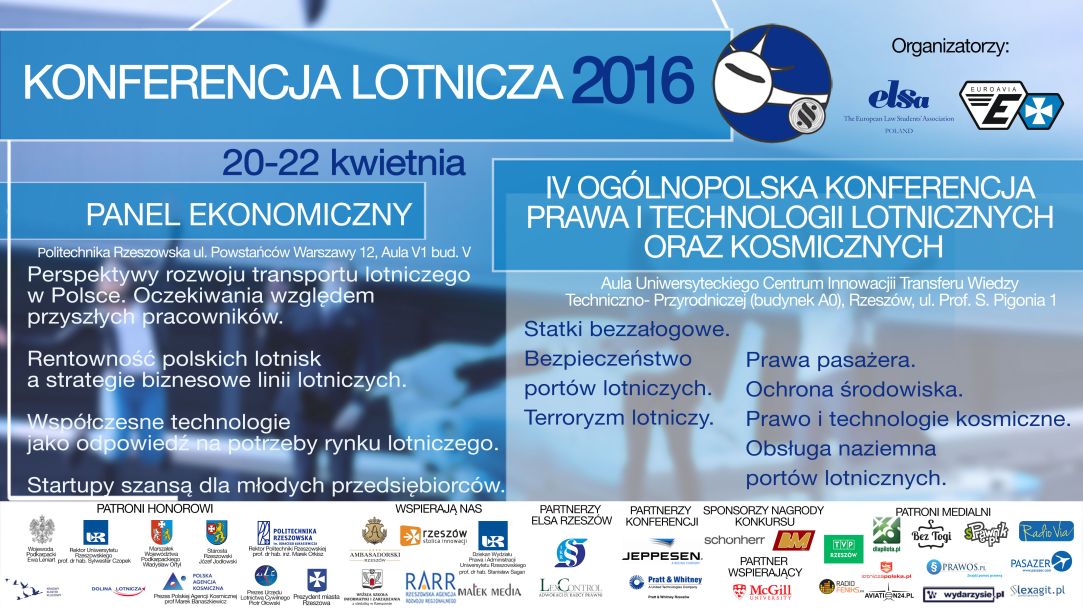 Europejskie Stowarzyszenie Studentów Prawa ELSA Rzeszów oraz Koło Naukowe EUROAVIA Rzeszów zapraszają na kolejną z cyklu Konferencję Prawa i Technologii Lotniczych oraz Kosmicznych.