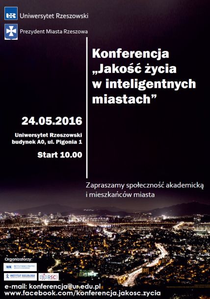 Instytut Nauk o Polityce wraz z Instytutem Socjologii oraz Ruchem miejskim Rzeszów Smart City, zapraszają na konferencję naukową pt. "Jakość życia w inteligentnych miastach".