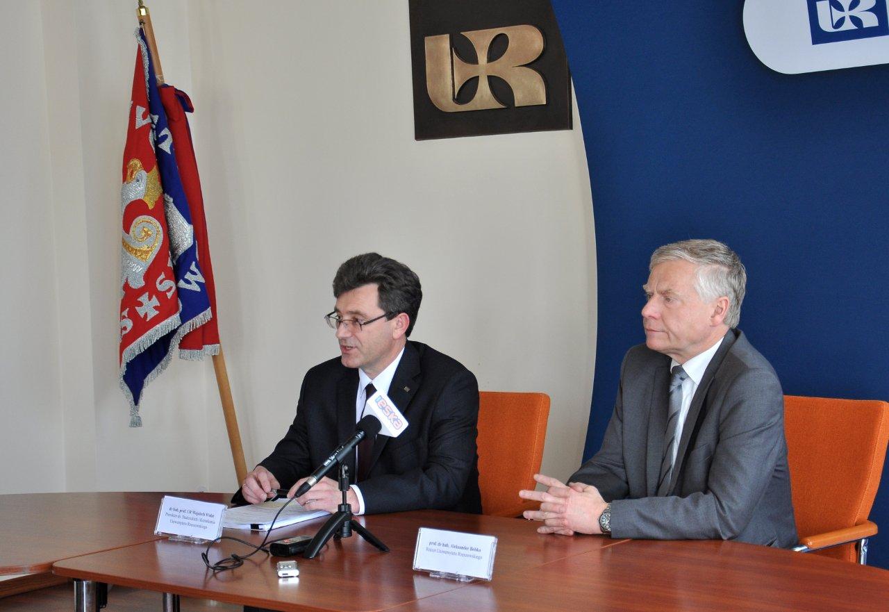 Konferencja prasowa poświęcona tematyce rekrutacji w roku akademickim 2015/2016 w Uniwersytecie Rzeszowskim.