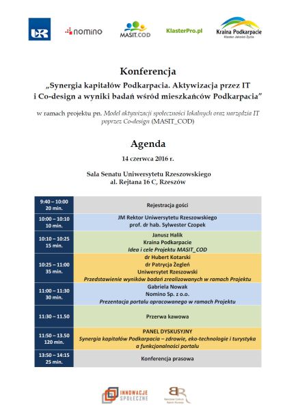 Konferencja „Synergia kapitałów Podkarpacia. Aktywizacja przez IT i Co-design a wyniki badań wśród mieszkańców Podkarpacia”