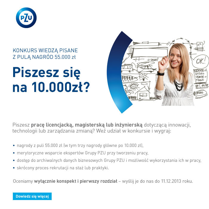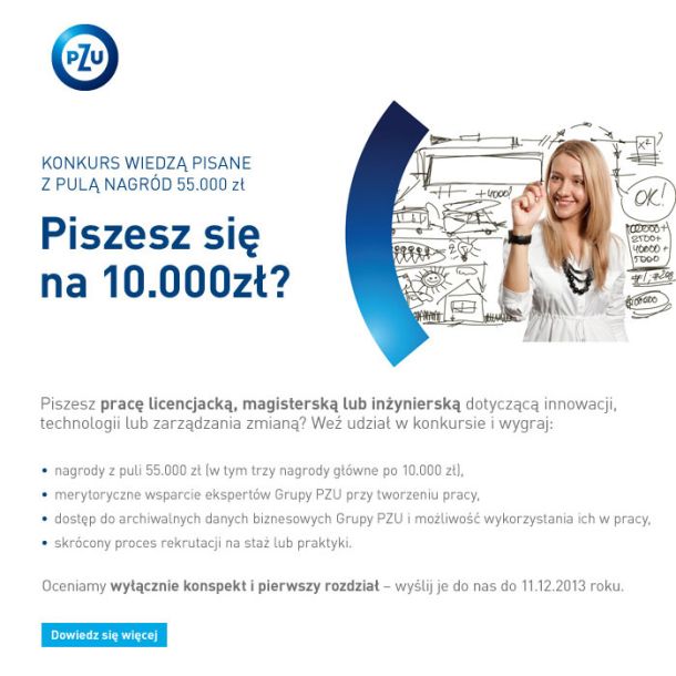 - merytoryczne wsparcie ekspertów Grupy PZU przy tworzeniu pracy,
