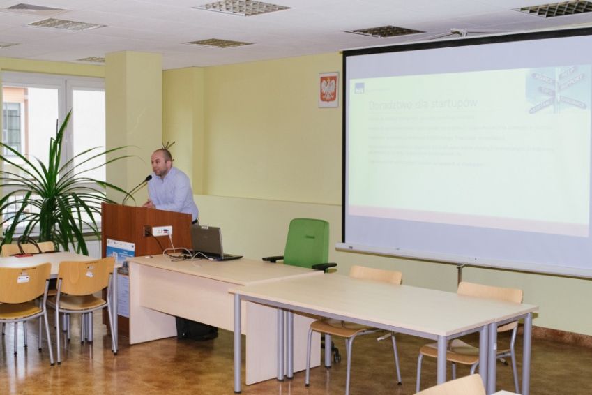 Mirosław Chudy z Uniwersytetu Rzeszowskiego zaprezentował działania realizowane przez UR mające na celu wsparcie studentów chcących zakładać i rozwijać swoje startupy.