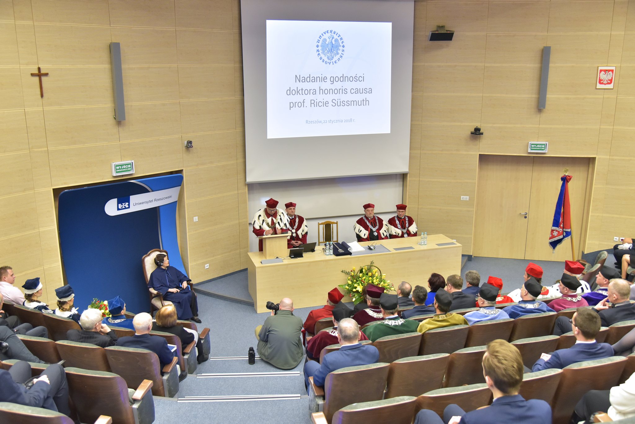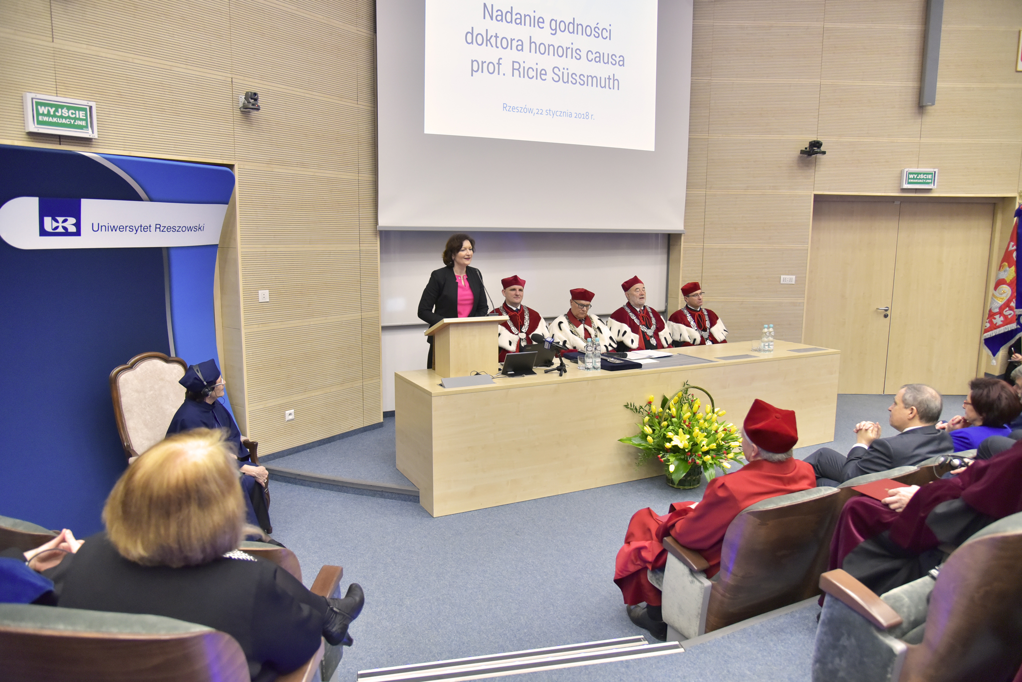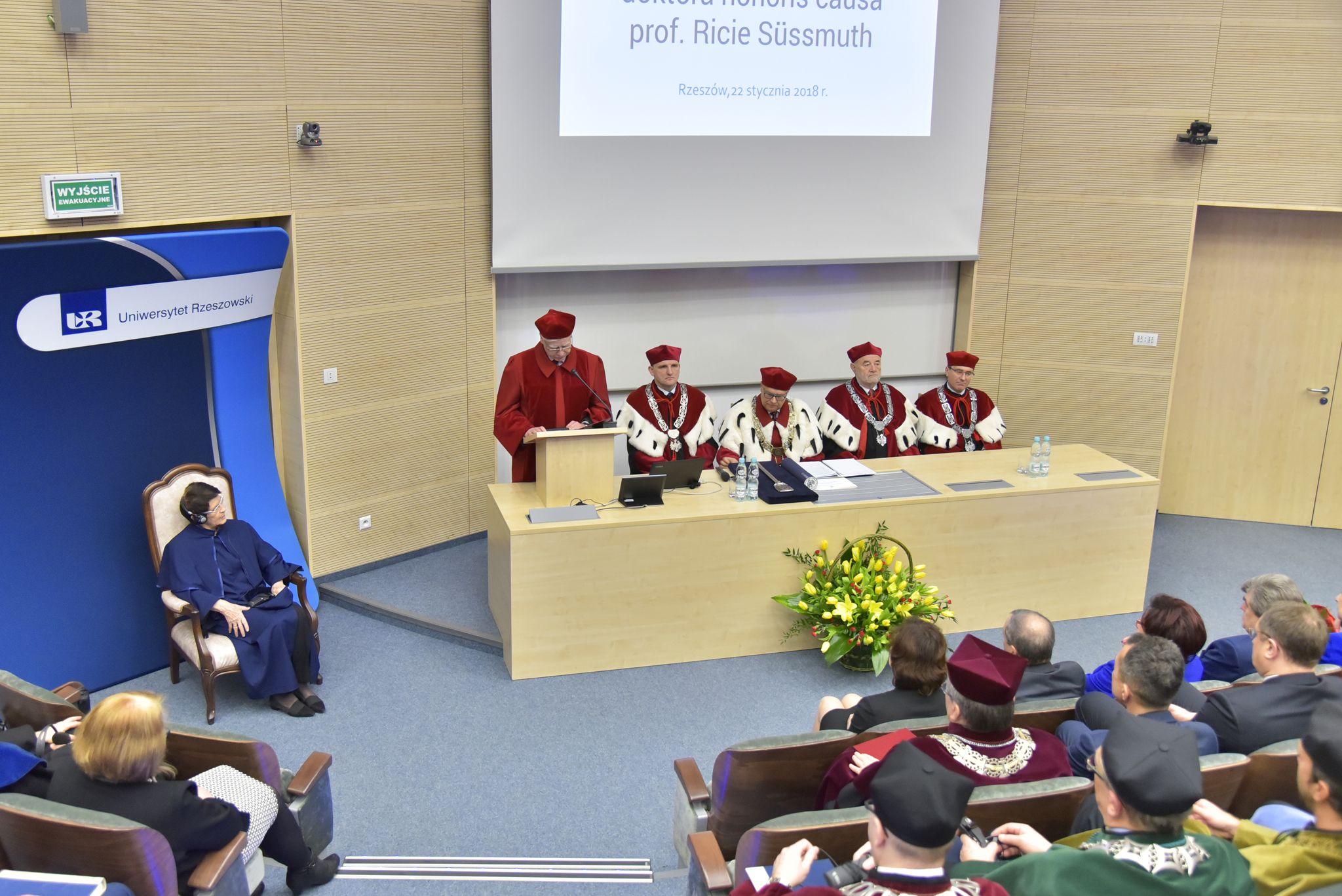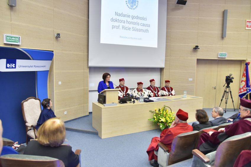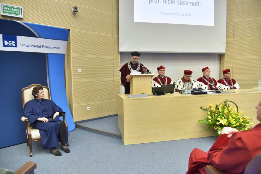 22 stycznia 2018 r. w Uniwersytecie Rzeszowskim odbyło się uroczyste posiedzenie Senatu połączone z nadaniem Doktoratu Honoris Causa Pani Profesor Ricie Süssmuth przewodniczącej Bundestagu w latach 1988-1998.