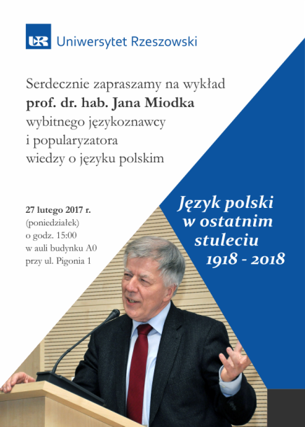 Rektor i Senat Uniwersytetu Rzeszowskiego mają zaszczyt zaprosić na uroczyste posiedzenie Senatu UR — nadanie godności doktora honoris causa Uniwersytetu Rzeszowskiego prof. dr. hab. Janowi Miodkowi