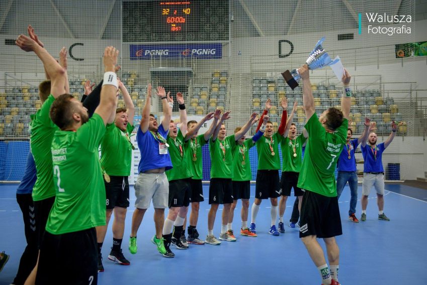 Piłkarze ręczni AZS Uniwersytetu Rzeszowskiego zdobyli Akademickie Mistrzostwo Polski w piłce ręcznej mężczyzn w Opolu. Drużyna podopiecznych Sebastiana Pelca i Macieja Śliża zdobyła złoty medal w klasyfikacji generalnej oraz złoty w tzw. typach uniwersyteckich. Drużyna podopiecznych Sebastiana Pelca (I trener) oraz Macieja Śliża (II trener) świetnie zaprezentowała się na Akademickich Mistrzostwach Polski w piłce ręcznej mężczyzn w Opolu (31.05-3.06.2018)